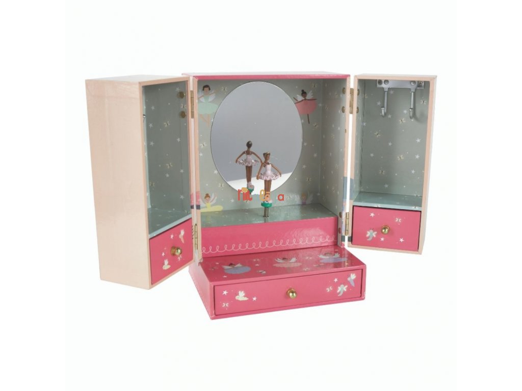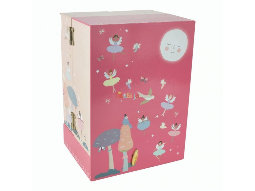 Natočte kľúč vzadu, potom otvorte, aby ste videli, ako sa krásna bábika krúti dookola pri tóne hudby.