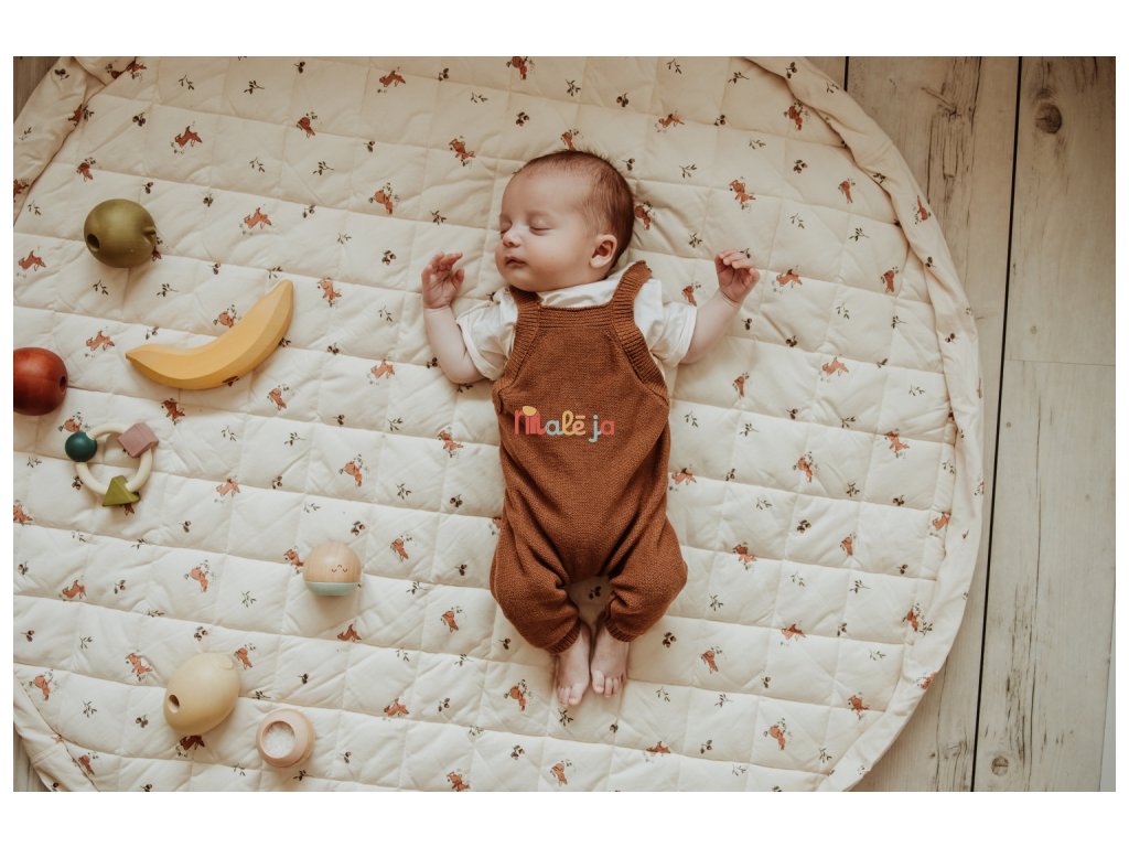 Má 120 cm v priemere a vyrobené z organickej bavlny GOTS, aby dieťa malo maximálny pôžitok a pohodlie.