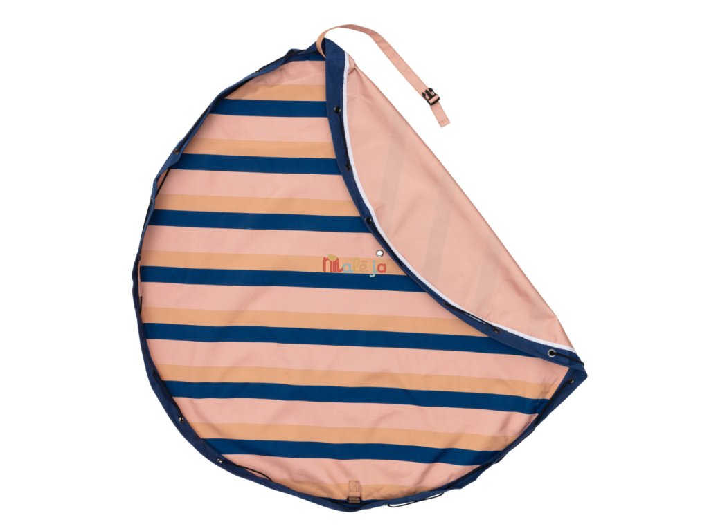 Play&Go Outdoor je jedinečná nepremokavá podložka a vak v jednom, kam si môžete pobaliť so sebou všetko čo potrebujete, či už plánujete stráviť celý deň na pláži, ísť do parku alebo na skvelý piknik. Stačí ho rozprestrieť a máte pekné miesto na sedenie a hranie sa. V balení tiež nájdete ramenný popruh, ktorý sa dá ľahko zapnúť a Play&Go si môžete ľahko zavesiť napr. na kočík. Priemer podložky je 140cm.