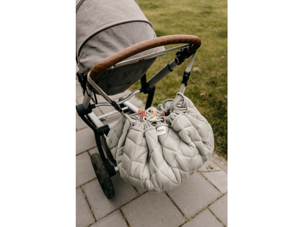 Nastaviteľný a odnímateľný ramenný popruh zaručí skvelý komfort alebo ho len zaveste na kočík a môžete vyraziť! Vyskúšajte a zamilujte si túto jedinečnú hraciu podložku.