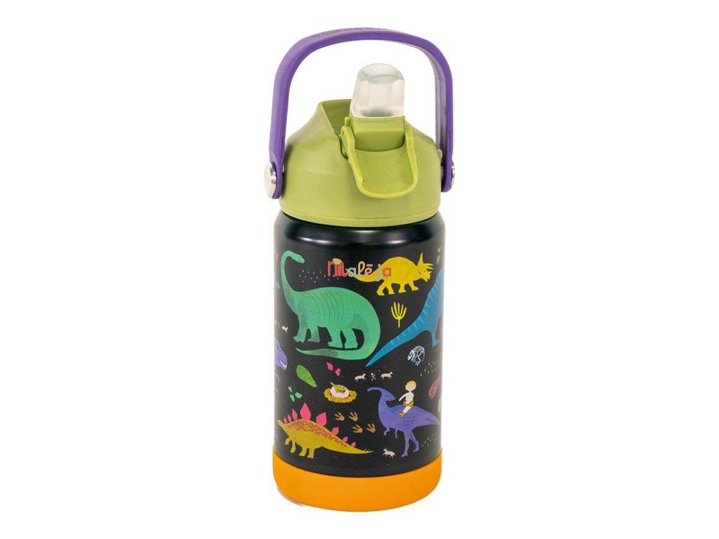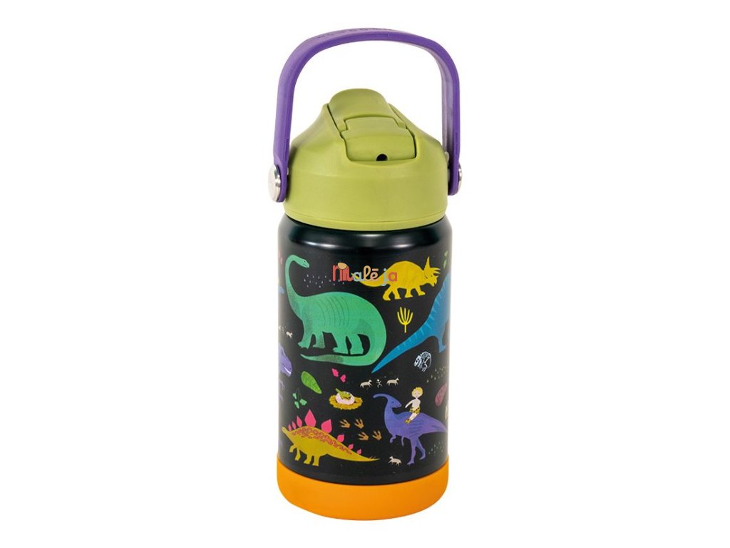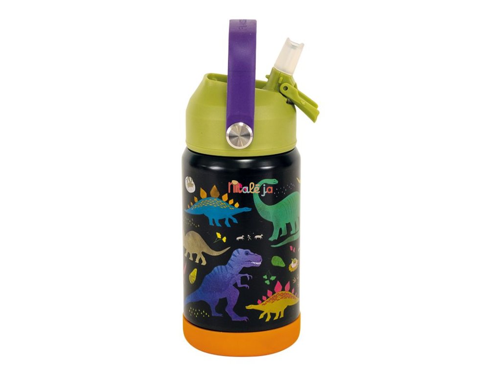 Floss&Rock 100% nepriepustná fľaška na nápoje je z nehrdzavejúcej ocele s praktickým náustkom a rukoväťou na prenášanie. Fľaša je vákuovo izolovaná a udrží nápoje studené. Vďaka žiarivej farbe, vzoru a jedinečnému dizajnu bude ľahké nájsť vašu fľašu v preplnenej taške.