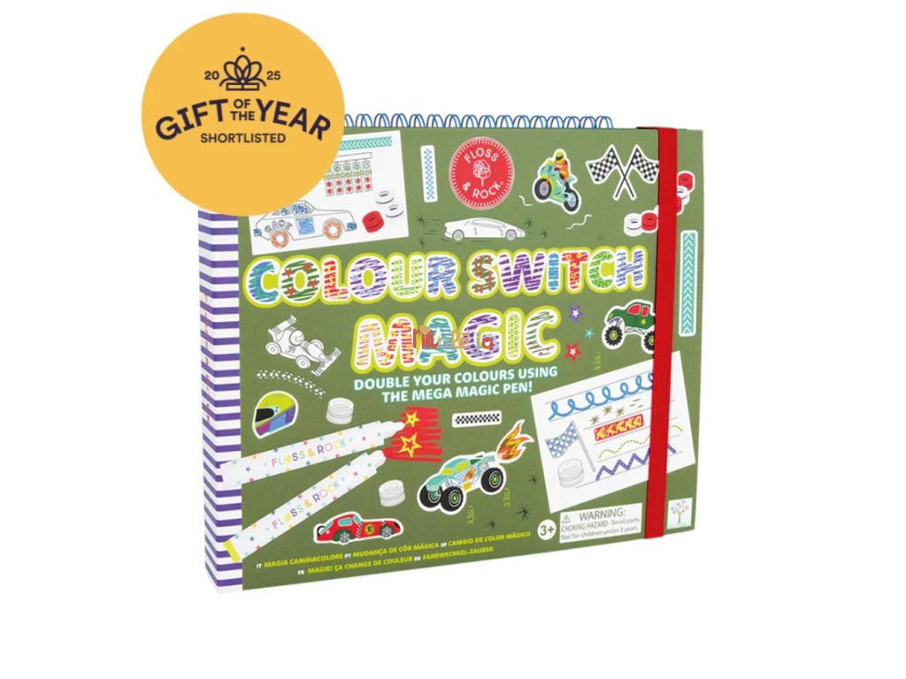 Užite si zábavu s Colour Switch Magic! Čarovné biele pero premení 6 farieb na 12, výsledkom čoho sú hodiny zábavy pri vytváraní rôznych vzorov. Každý blok obsahuje 10 prázdnych strán, 5 farebných strán, 6 farebných prepínacích pier, 1 čarovné pero, 5 linkovaných strán na písanie a 2 strany s nálepkami.