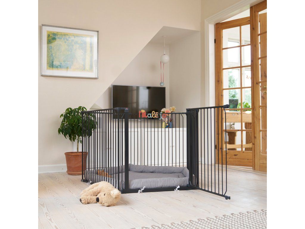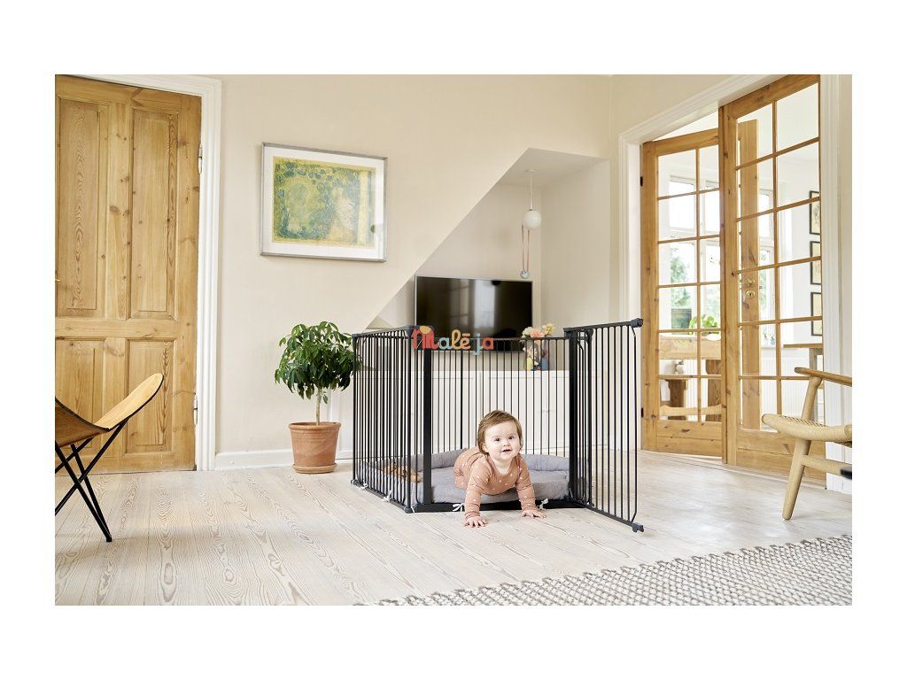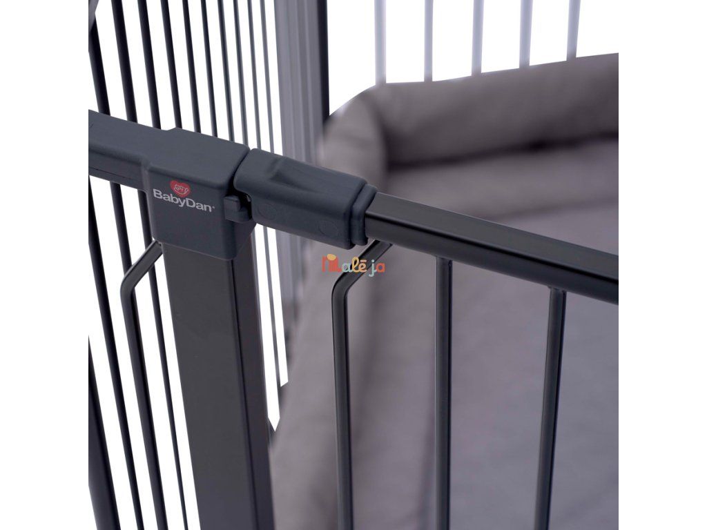 Ohrádku Carl je možné ľahko premeniť na bezpečnostnú zábranu, zábranu ku krbu alebo prepážku miestnosti, ako vaše dieťa rastie a vyžaduje viac priestoru. Jednoducho pridajte nástenné držiaky (predávajú sa samostatne) a môžete vo svojom dome vytvoriť zábranu až do 350 cm. Ohrádkou aj zábranou môžete ľahko prejsť pomocou širokých dverí, ktoré je možné otvoriť z oboch strán jednou rukou – užitočná funkcia v uponáhľanom živote. Vďaka svojmu flexibilnému dizajnu a robustnej konštrukcii je BabyDan Carl spoľahlivým riešením na vytvorenie bezpečného prostredia aj vo väčších priestoroch. Možno neobmedzene predlžovať pomocou ľubovoľného počtu predĺžení (33 alebo 72 cm predĺženie sa predávajú zvlášť)