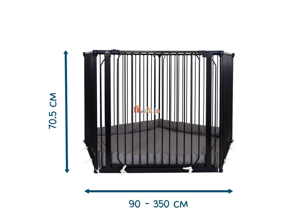 Technická špecifikácia: Výška 70,5 cm Šírka 350cm Hĺbka 3,5 cm. Minimálna šírka otvoru 90 cm. Maximálna šírka priestoru 350 cm Materiál PE (polyetylén) a oceľ s práškovým nástrekom Farba: Čierna Číslo položky: BD501513 Bezpečnostná norma EN 1930 : 2011