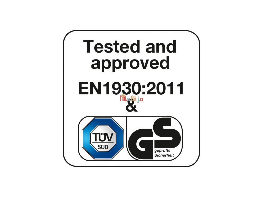 Testované v TÜV. Zodpovedá najnovšej európskej norme EN 1930: 2011. Zodpovedá aj americkej norme ASTM F1004.