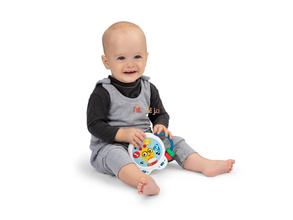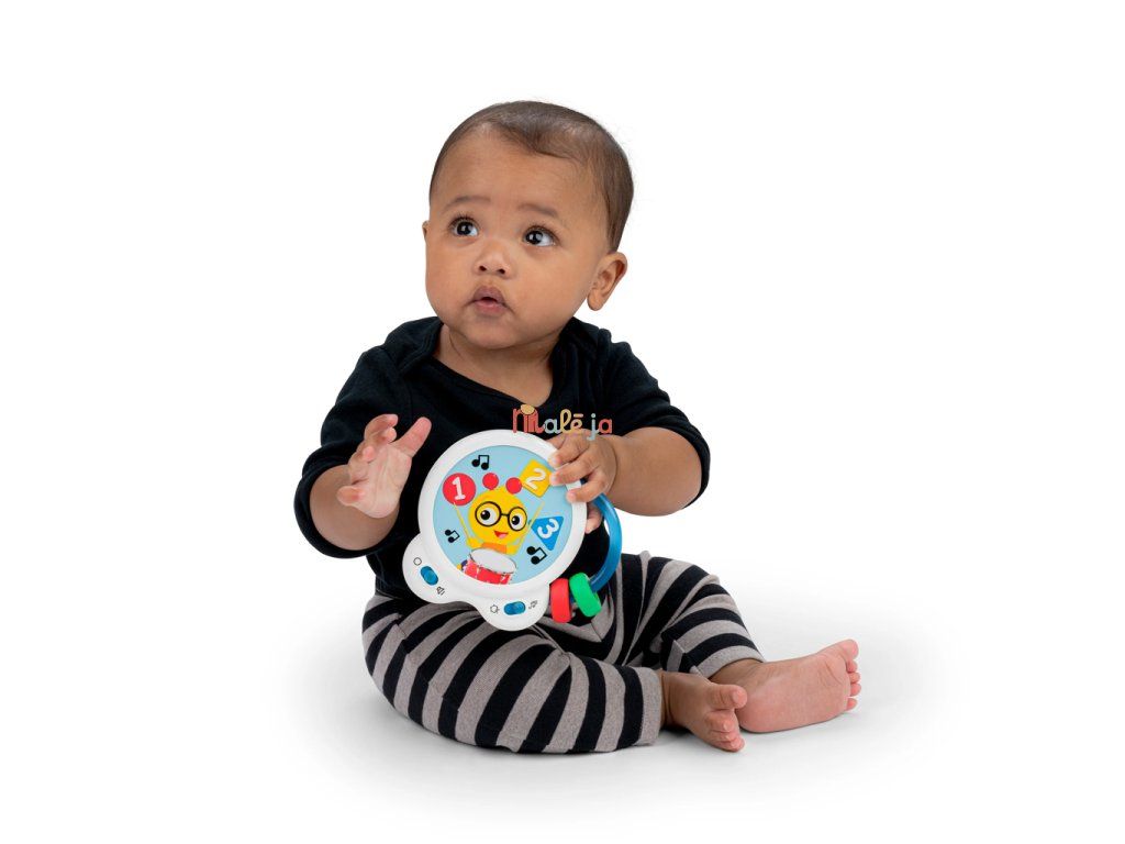 - Hudobná hračka Baby Einstein Tiny Tempo – bubon – ponúka 2 režimy hry na objavovanie hudby. Bábätko môže experimentovať s 21 zvukmi v režime Drum Mode, alebo si zahrať spolu so 6 prednahranými skladbami v režime Melody.