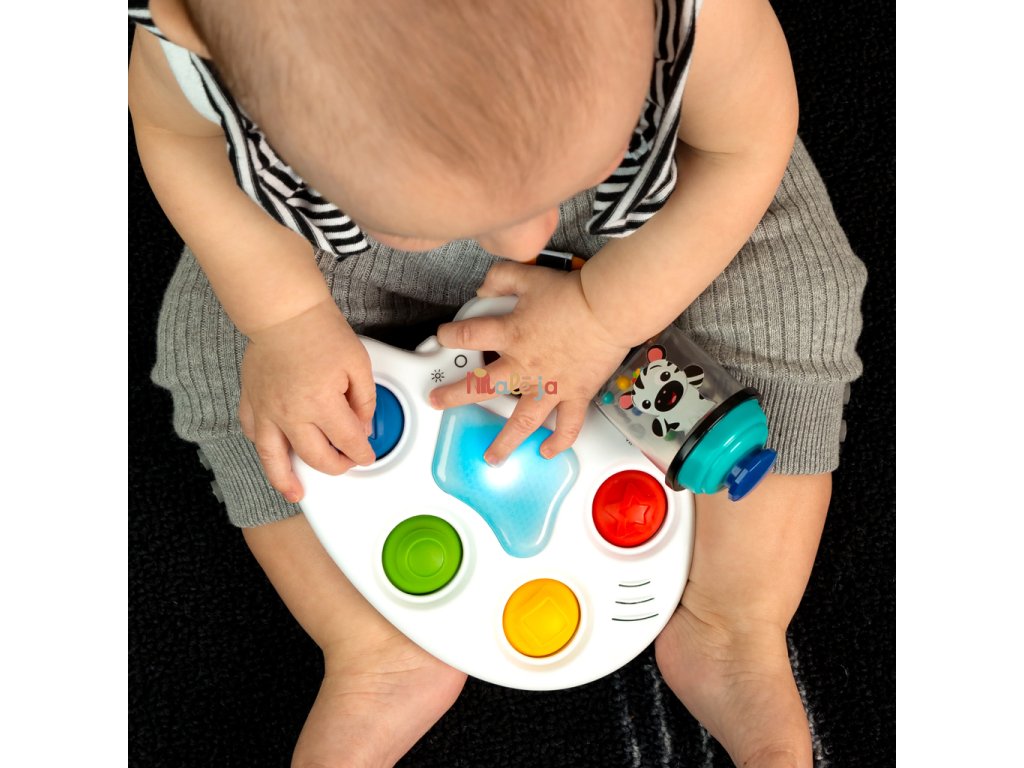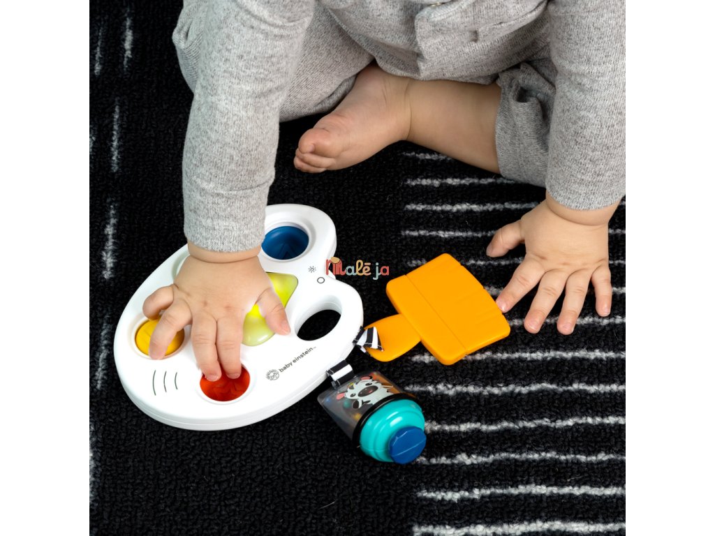 Malé ručičky budú radi stláčať a skúmať zmyslové schopnosti so senzorickou hračkou Baby Einstein Color Palette Popper. Táto malá hračka s umeleckou tematikou obsahuje svetlá, hudbu, senzorické hračky a bublinkové puklice na zatláčanie, ktoré odmeňujú zvedavosť bábätka a zapájajú zmysly pri každom dotyku.