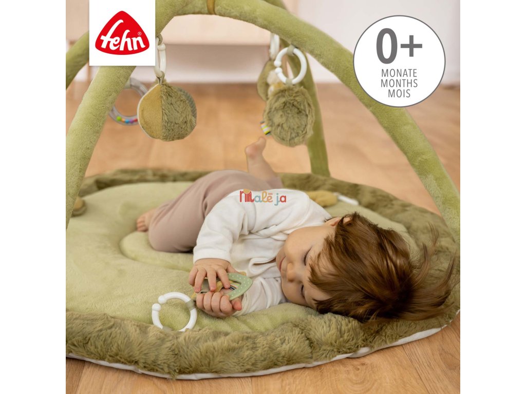 Interaktívna deka s chameleónom a plochou na ležanie z rôznych hebkých materiálov láka bábätko k mojkaniu, skúmaniu a hre. Tri odnímateľné prvky so šuštivým papierom, pískatkom a hrkálkou na deke podporujú hmatové vnímanie a koordináciu ruka–oko.