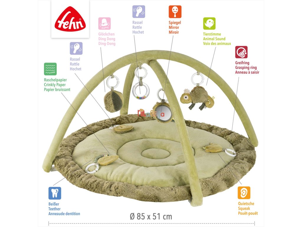 Na mäkkej deke je celkovo sedem odnímateľných hračiek, ktoré stimulujú hmat, sluch aj motorické zručnosti. Vďaka 3D interaktívnej deke si bábätko hravou formou posilňuje chrbtové a krčné svaly v rôznych fázach vývoja počas ležania, hrania, plazenia alebo sedenia.