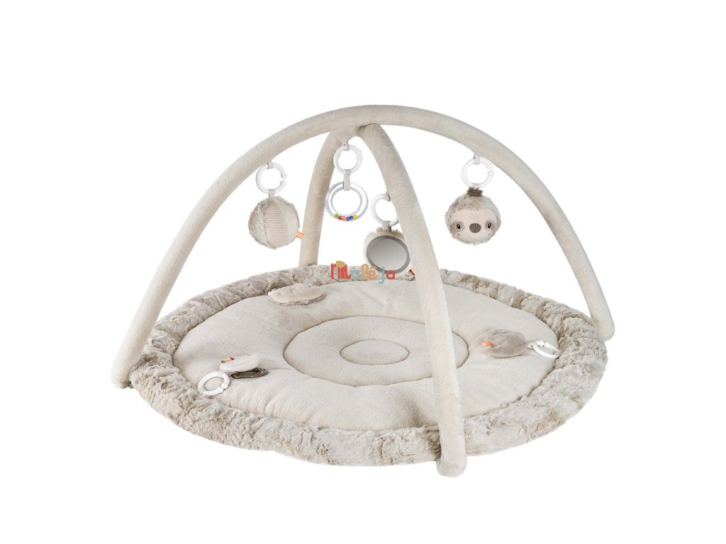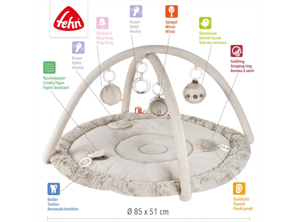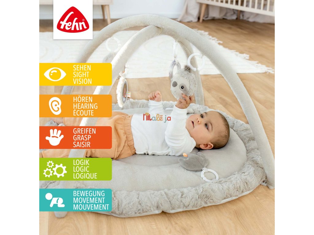 Interaktívna deka s leňochodom a priestorom na ležanie z rôznych hebkých materiálov pozýva bábätko k mojkaniu, skúmaniu a hre. Tri odnímateľné prvky so šuštivým papierom, pískatkom a hrkálkou na deke podporujú hmatové vnímanie a koordináciu ruka–oko.