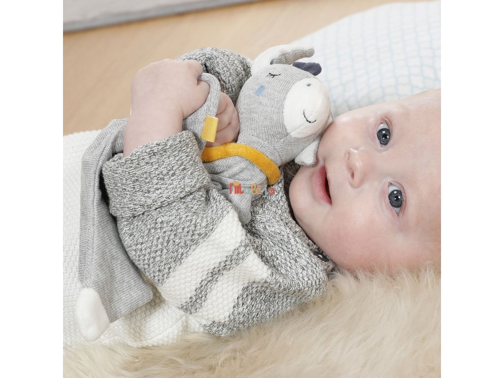 pomáha deťom zaspať. Vďaka praktickému krúžku je možné na muchláčika pripevniť