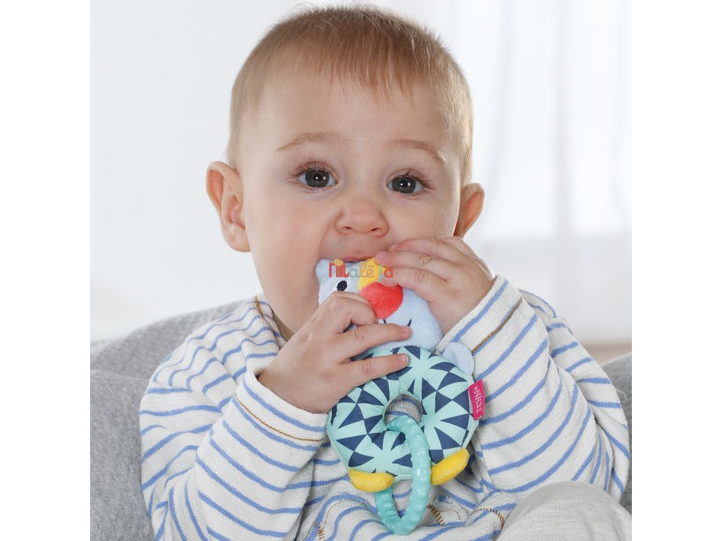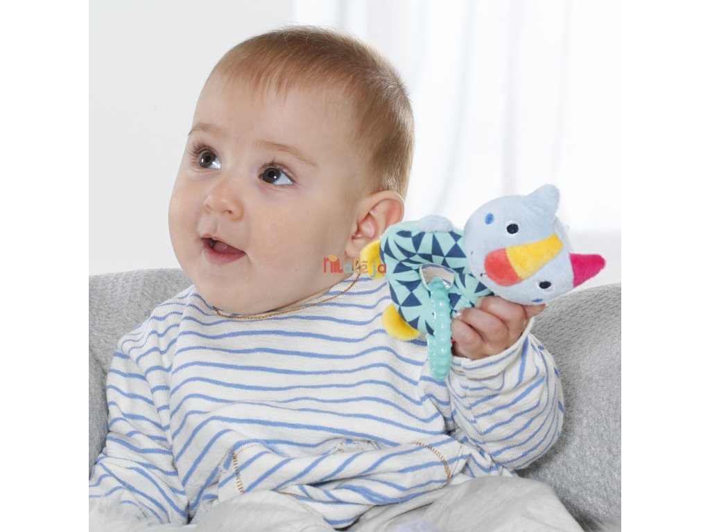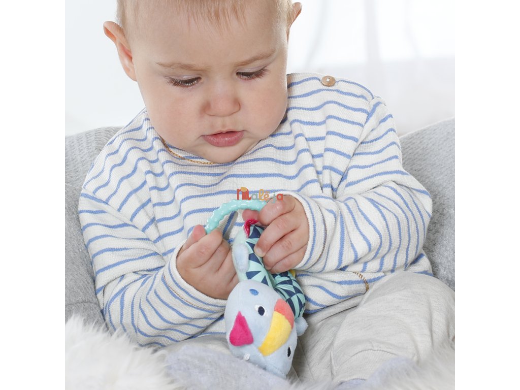 sprevádza dieťa pri hraní a snívaniu v postieľke, v detskej sedačke alebo v