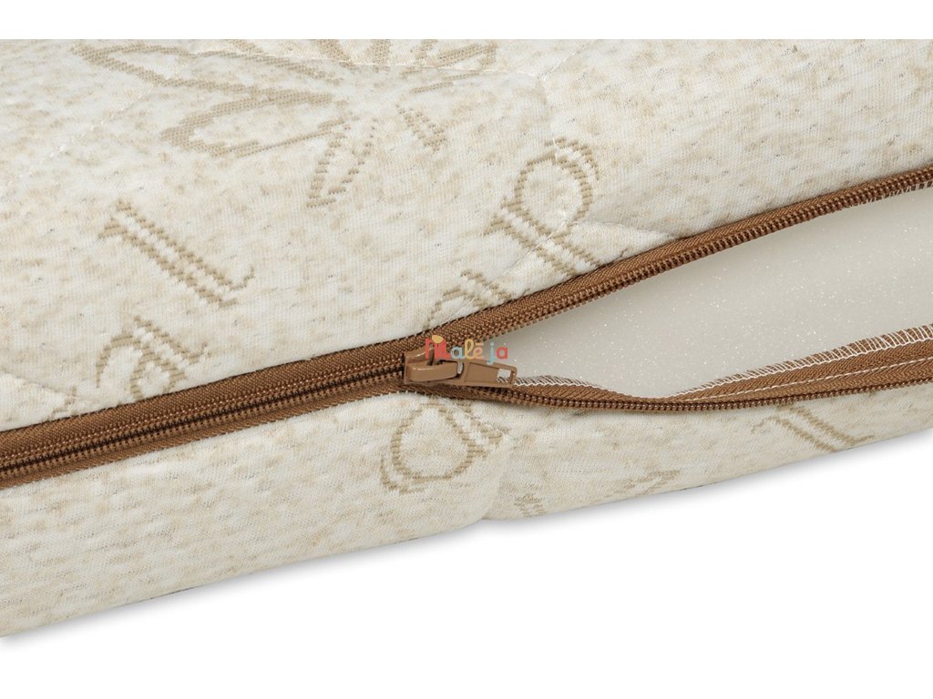 Prešívaný žakárový poťah je vyrobený zo zmesi prírodných konopných vlákien a polyesteru. Konopné vlákno má schopnosť absorbovať vlhkosť a má antibakteriálne vlastnosti. 360-stupňový zips navyše umožňuje rýchle a jednoduché odstránenie a vypranie znečisteného poťahu.