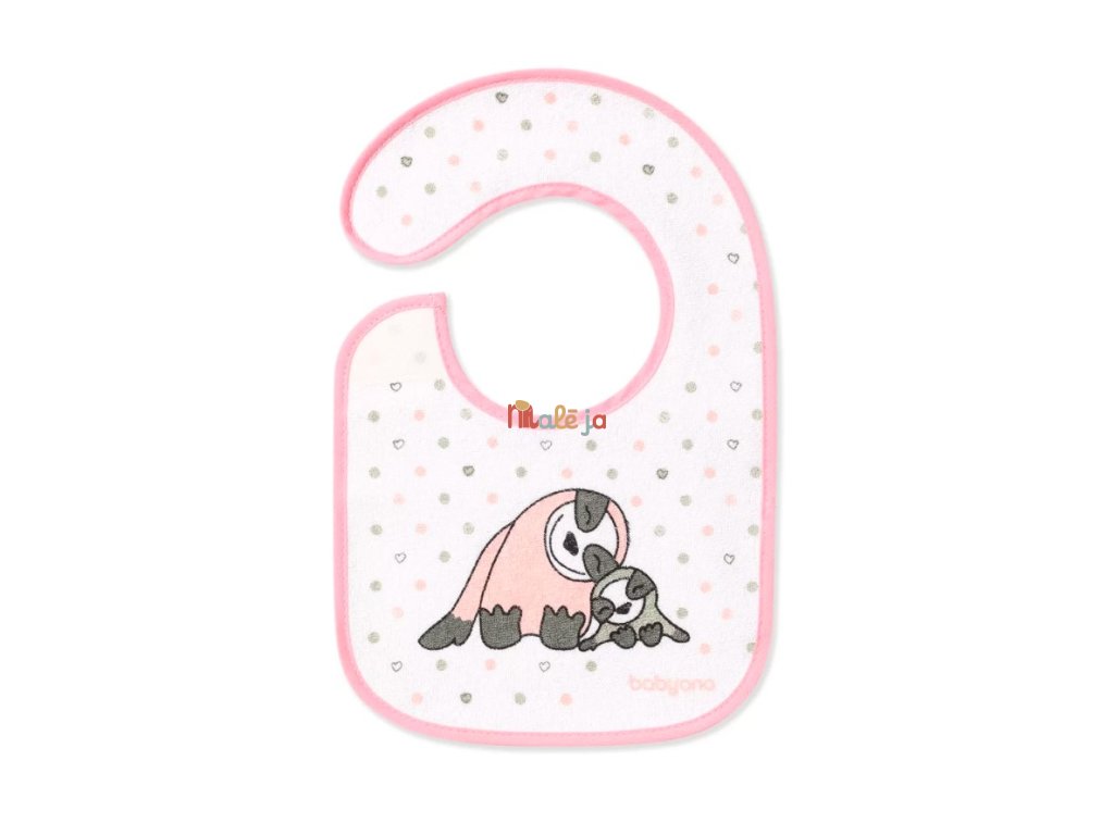 Podbradník s krásnym motívom je vyrobený z vysoko kvalitnej froté bavlny. Vnútorná vrstva je z nepremokavého materiálu, ktorý dodatočne chráni oblečenie dieťatka pred znečistením. Pohodlné a praktické zapínanie na suchý zips zvyšuje pocit pohodlia pre dieťatko.