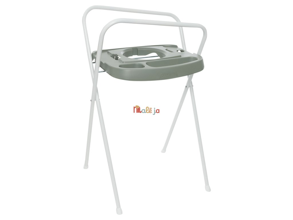 Stojan má výšku 103 cm, otvor na zavesenie uteráka a vytvorené miesto na mydlo. Je skladacia a je vybavený inovatívnym Click systémom. Len 2 kliknutia a vanička je ľahko a bezpečne umiestnená na kúpací stojan. Rovnako ľahko môže byť pomocou kliknutia vanička zo stojana odpojená. Tiež kúpací kýblik Bébé-Bubble je možné na tento stojan umiestniť, takže vám stačí kúpiť len 1 stojan a naň umiestniť najprv Bébé-Bubble a potom vaničku.