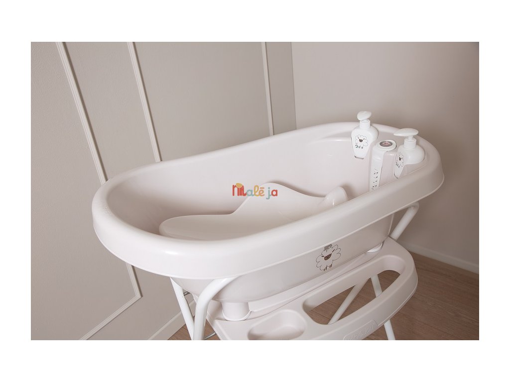 Unikátna termovanička Bébé-Jou s monitorovaním teploty vody a dávkovačom mydla a šampónu. Komfortná a starostlivo konštruovaná termovanička Bébé-jou je vybavená inovatívnym Click systémom pre ešte väčšiu bezpečnosť a pohodlie pri kúpaní. Len 2 kliknutia a vanička je ľahko a bezpečne umiestnená na kúpací stojan. Rovnako ľahko môže byť pomocou kliknutia vanička zo stojana odpojená.