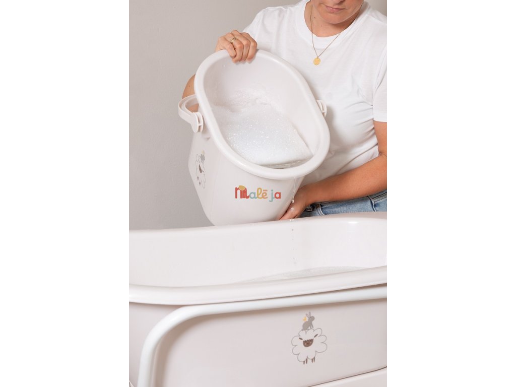 Vanička od Bébé-Jou je optimálne navrhnutá z nezávadného materiálu vo farbe koordinovanej s ostatnými výrobkami a ozdobená milými postavičkami, ktoré deti tak milujú. Ľahko sa udržuje v čistote. Vanička je navrhnutá s ohľadom na potreby dieťaťa. Má hladký povrch bez ostrých hrán, ľahko sa čistí, má anatomický tvar na obdobie kedy si dieťa už sadá, integrované miesto na odkladanie mydla či šampónu, spodný odtok na ľahké vyprázdňovanie av kombinácii s ostatnými výrobkami Bébé-Jou (stojan, bebe-bubble , vedierko na plienky atď) tvorí neprekonateľný systém, ktorého bezpečnosť bola preskúšaná najvyššou autoritou v tejto oblasti (nemecký skúšobný ústav TÚV), pokrývajúci všetky potreby dieťaťa i mamičky pri kúpaní. Vanička je zároveň priestranná, takže môže dlho slúžiť.