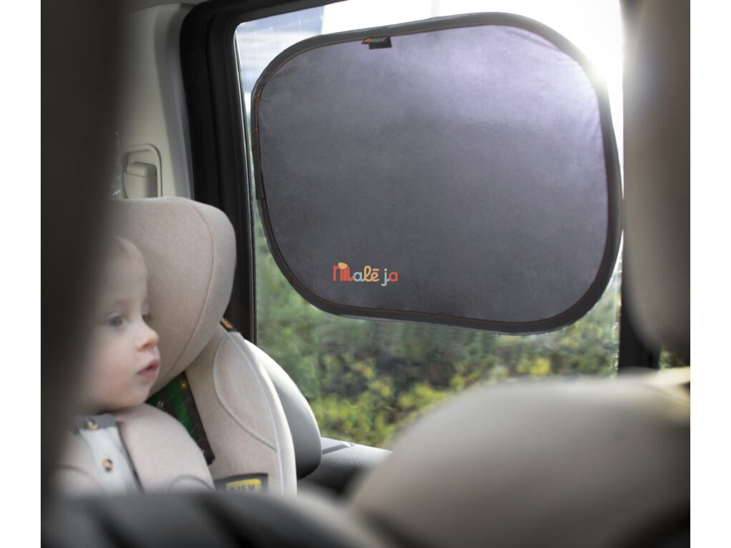 Nová, perfektná BeSafe slnečná clona Sunshide ochraňuje vaše dieťa pred UV žiarením. Je vyrobená z prilňavého materiálu, tak že ju priložíte priamo na okno automobilu a zatlačíte. Nie sú potrebné žiadne prísavky ani lepidlo. Clona disponuje UV filtrom 40+, vďaka svojej veľkosti ponúka veľký tienený priestor, ale zároveň nebráni vodičovi vo výhľade. V balení sú dve clony schované v praktickom látkovom púzdre.