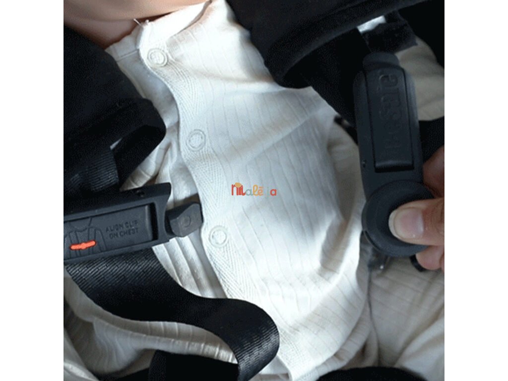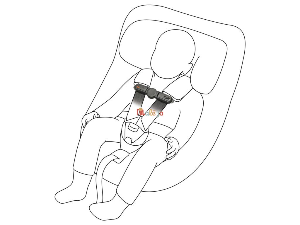 udržuje oba ramenné pásy v správnej polohe a zabraňuje dieťaťu uvoľniť pásy