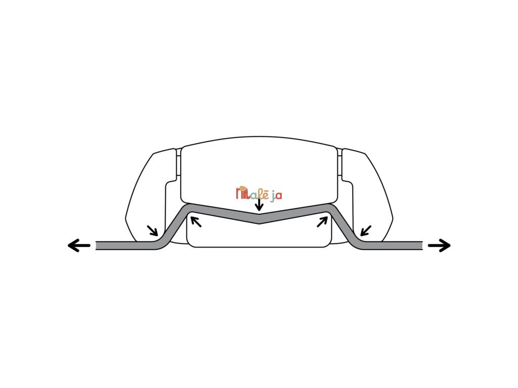využíva napätie postrojov na ukotvenie pozície, čo prakticky znemožňuje, aby ju dieťa stlačilo dolu