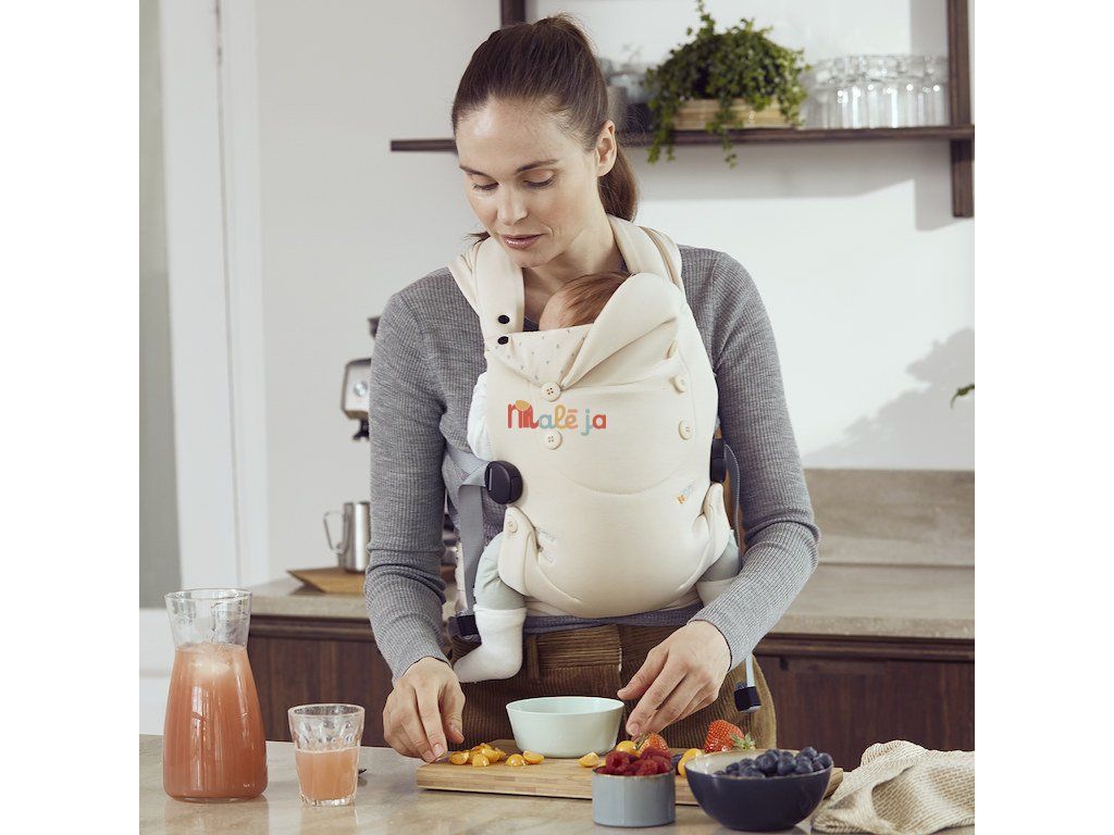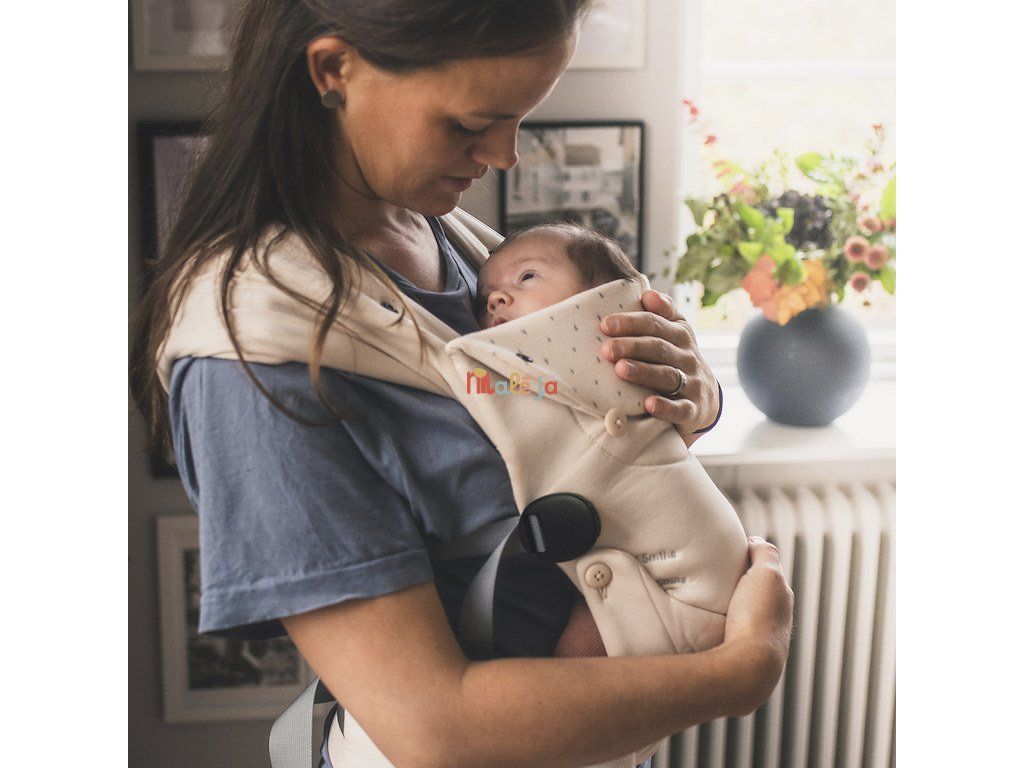 Nosič je navrhnutý tak, aby pomáhal podporovať prirodzený tvar chrbtice novorodenca, poskytoval oporu „kolienko ku kolienku“ a umožňoval hlbokú M pozíciu. Základňu nosiča možno upraviť podľa rastu bábätka. Špeciálne navrhnutý dizajn nosiča umožňuje pažiam novorodenca byť v prirodzenej hornej polohe. Novorodenec získava pevnú a optimálnu polohu pomocou podpornej tkaniny a vnútorných popruhov. Flexibilne nastaviteľná opierka hlavy udržuje hlavičku bábätka podoprenú, dokiaľ ju nie je bábätko schopné držať samo.