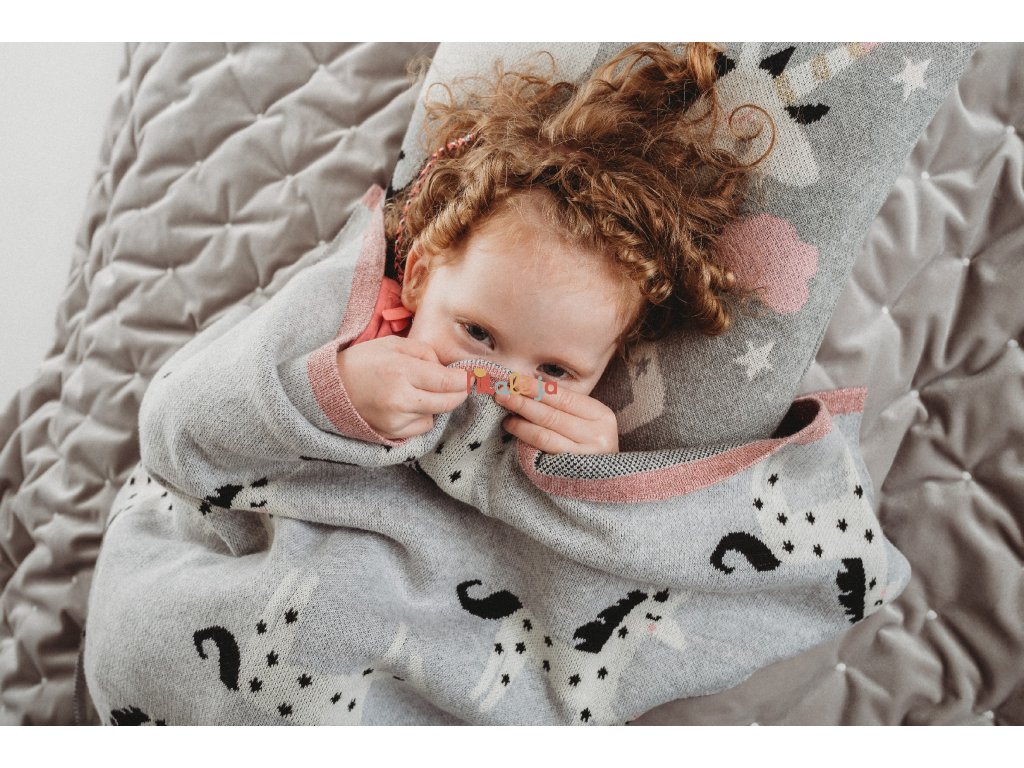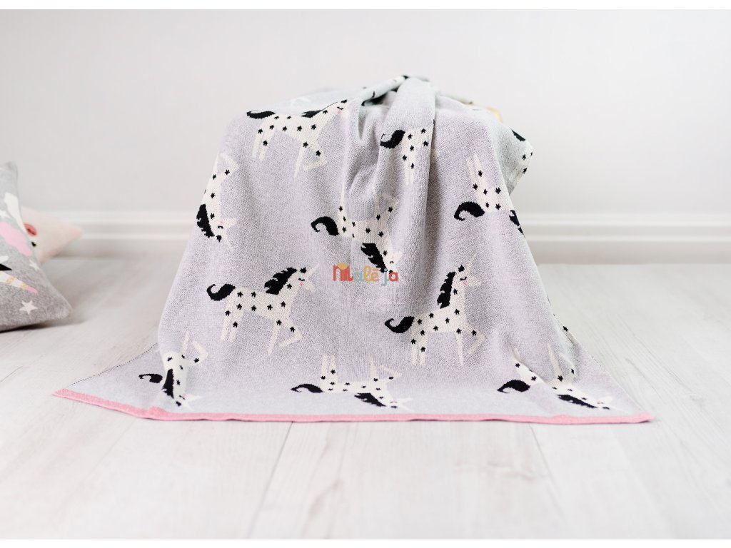 › Kočíky › Doplnky ku kočíkom › Deky do kočíka › Bizzi Pletená deka - jednorožci