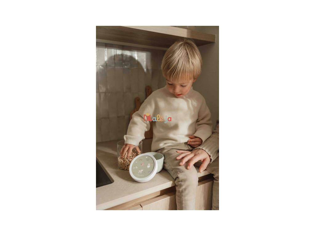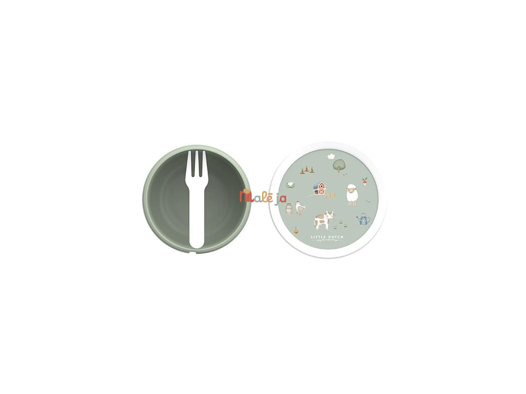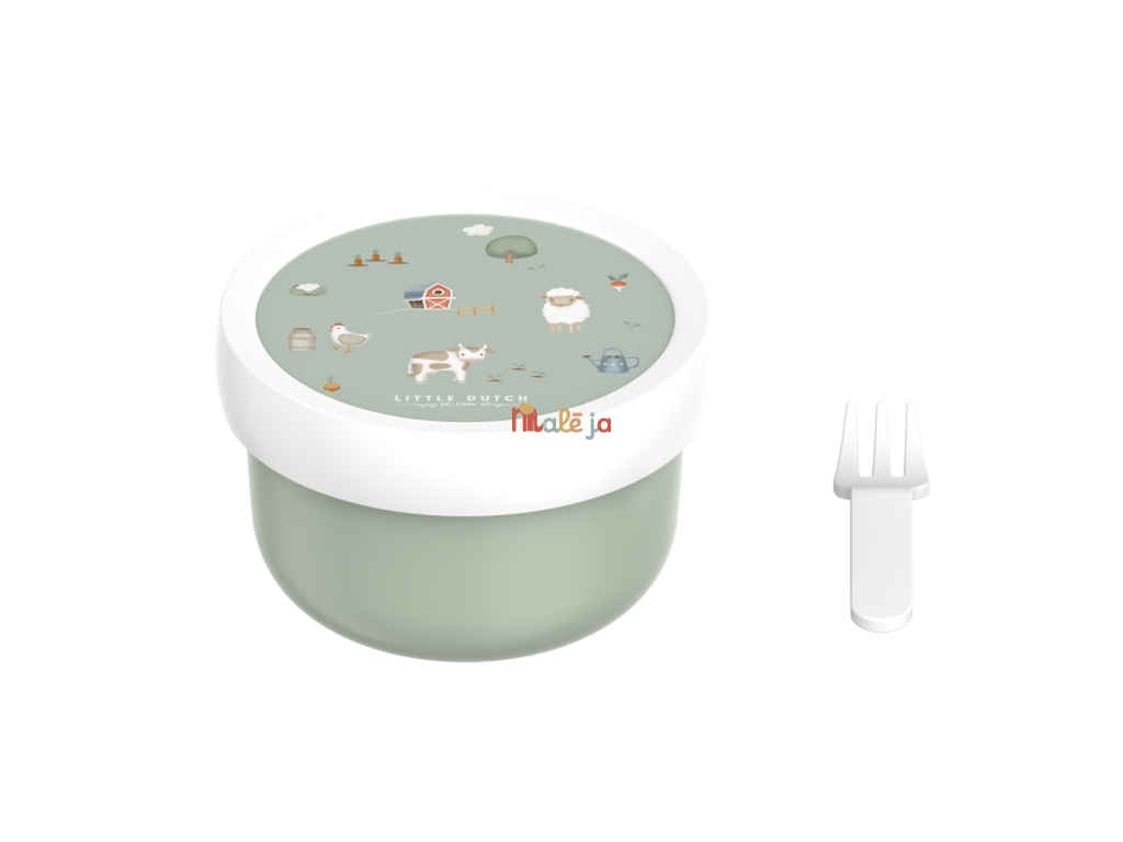 Praktický box na ovocie, nakrájanú zeleninou a pod. má spoľahlivé tesniace viečko, ktoré chráni obsah pred vysypaním. Súčasťou boxu je aj praktická malá vidlička, aby si vaše dieťa mohlo vychutnať svoju desiatu bez zašpinenia rúk.