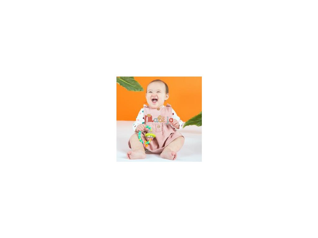 Úľava pri hryzení a hrkajúca zábava robí z tohto hryzátka/hrkálky jedno z najobľúbenejších. Štruktúra a zvuk upútajú pozornosť dieťaťa. Farebné guličky veselo hrkajú. Hrkálka obsahuje hryzátka v podobe krúžkov, ktoré masírujú ďasná dieťaťa.