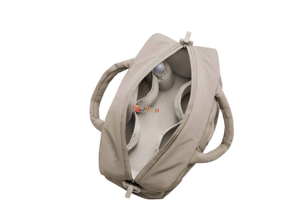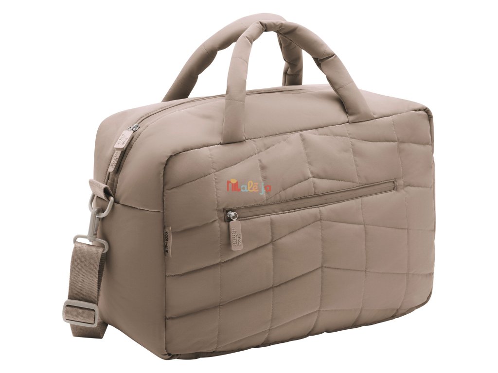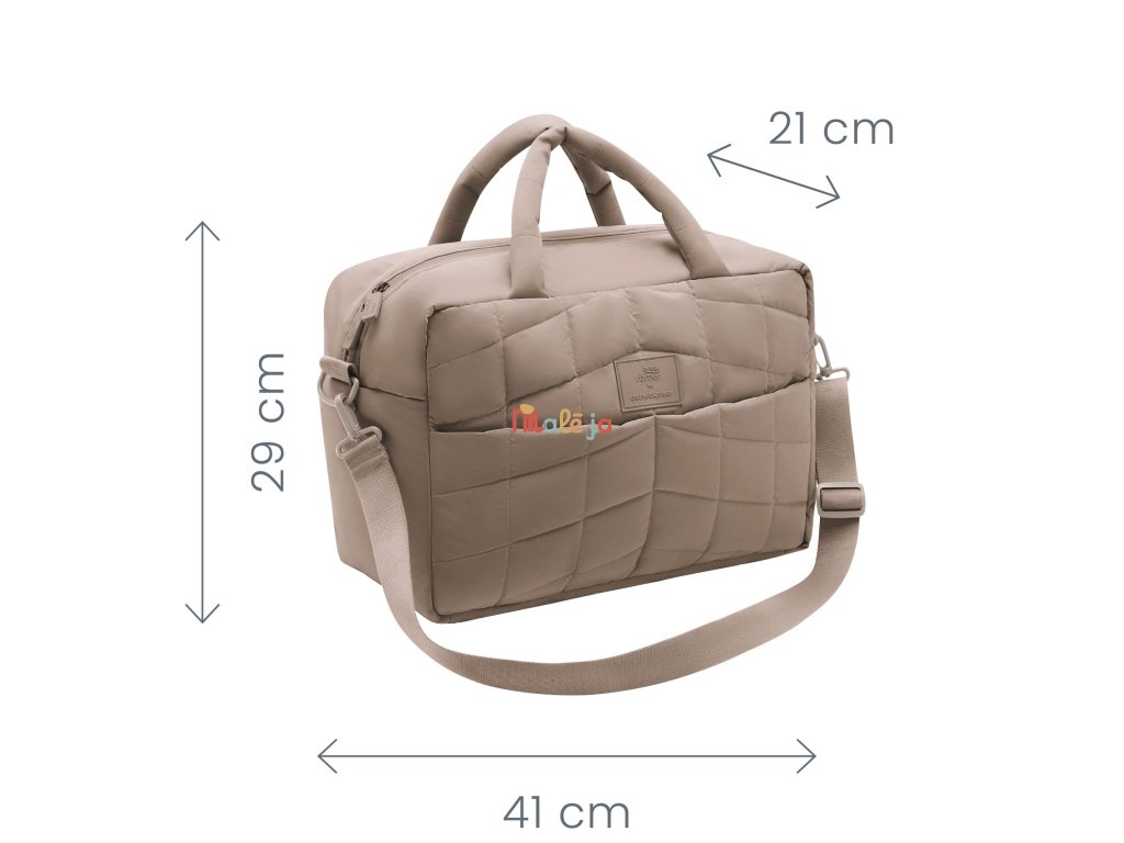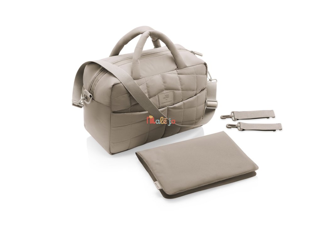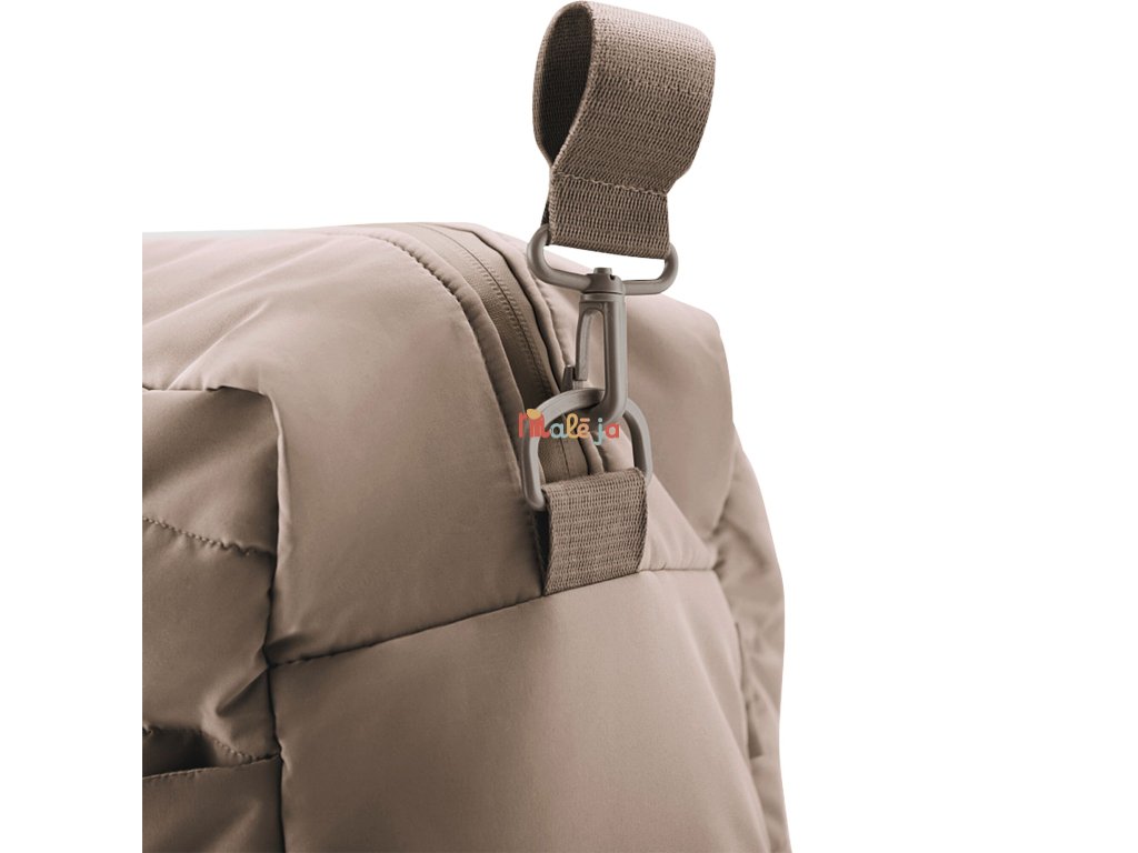 Súčasťou tašky je aj praktická prebaľovacia podložka. Tašku môžete jednoducho pripnúť na kočík alebo nosiť cez rameno – ideálne na prechádzky, výlety aj spoločné aktivity.