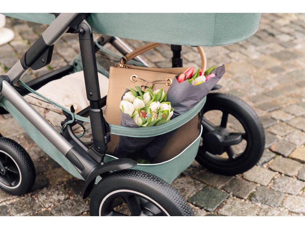 korby vyrastie. Navyše kočík rastie s dieťaťom, pretože ponúka dve opierky nôh –