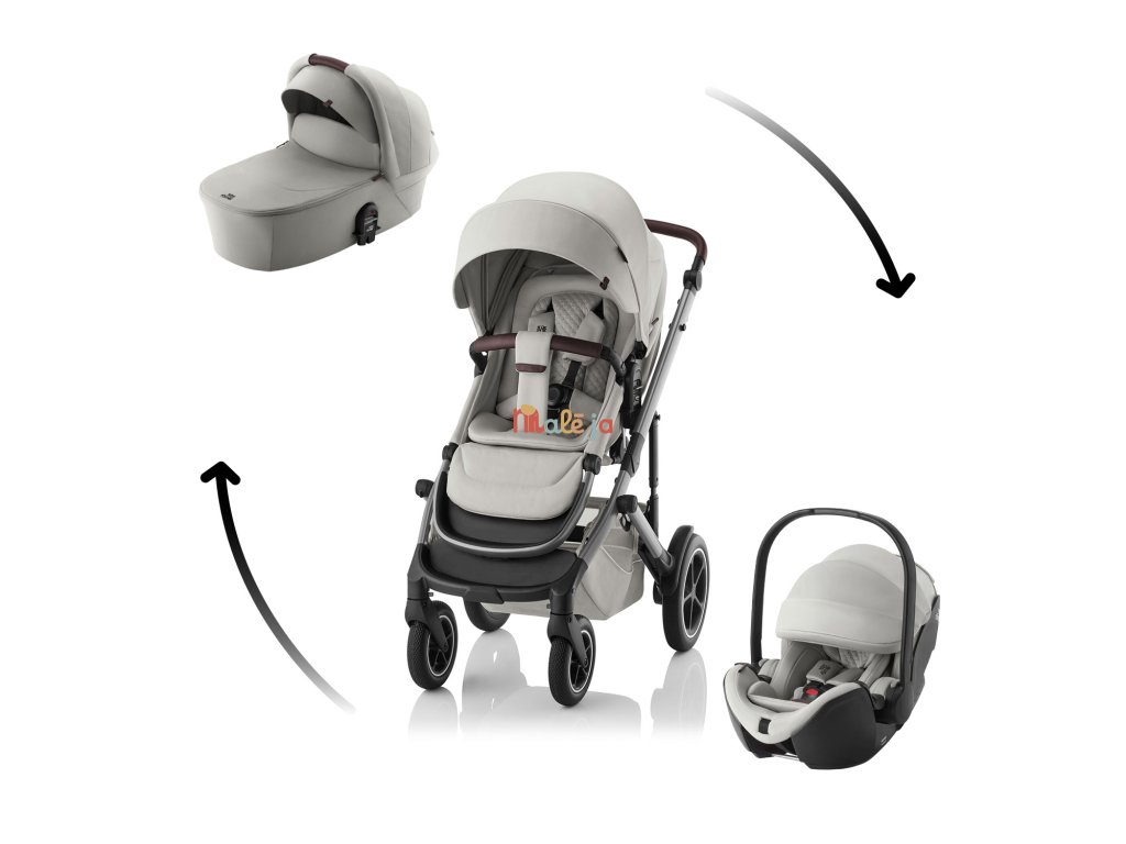 BRITAX Set kočík Smile 5Z + hlboká korba + autosedačka Baby-Safe PRO Lux, Linen Grey
