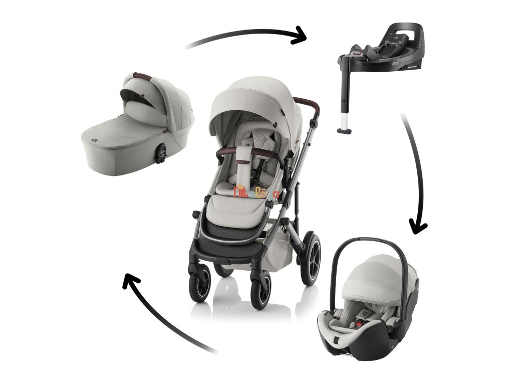 BRITAX Set kočík Smile 5Z + hlboká korba + autosedačka Baby-Safe PRO + Vario Base 5Z Lux, Linen Grey