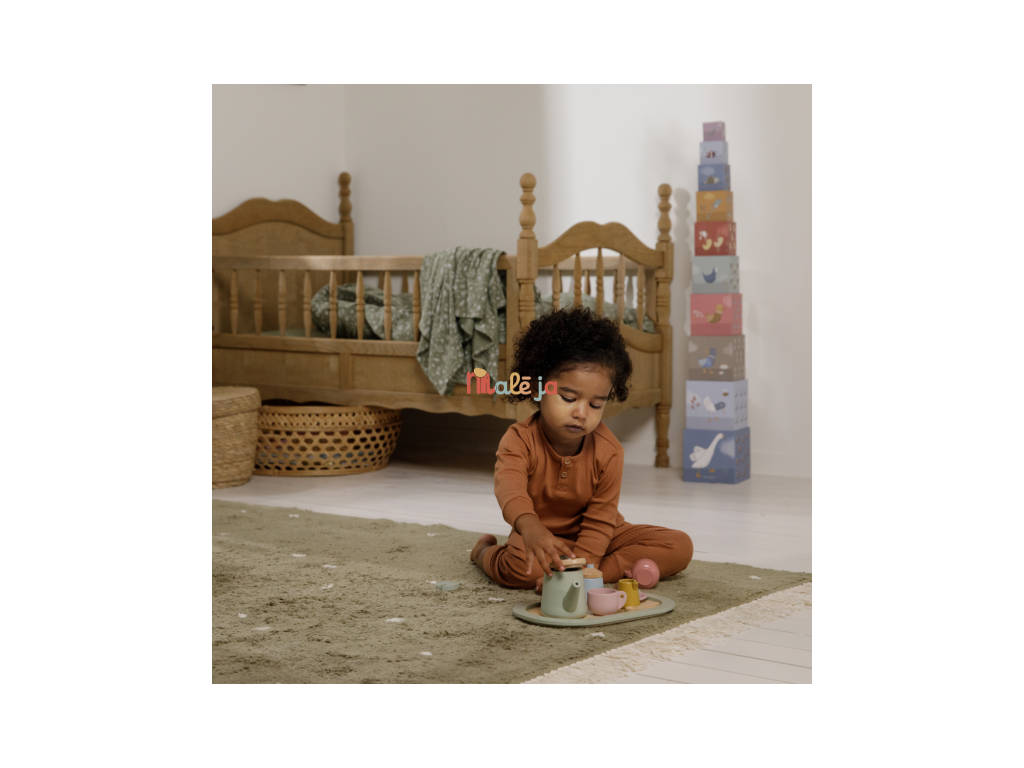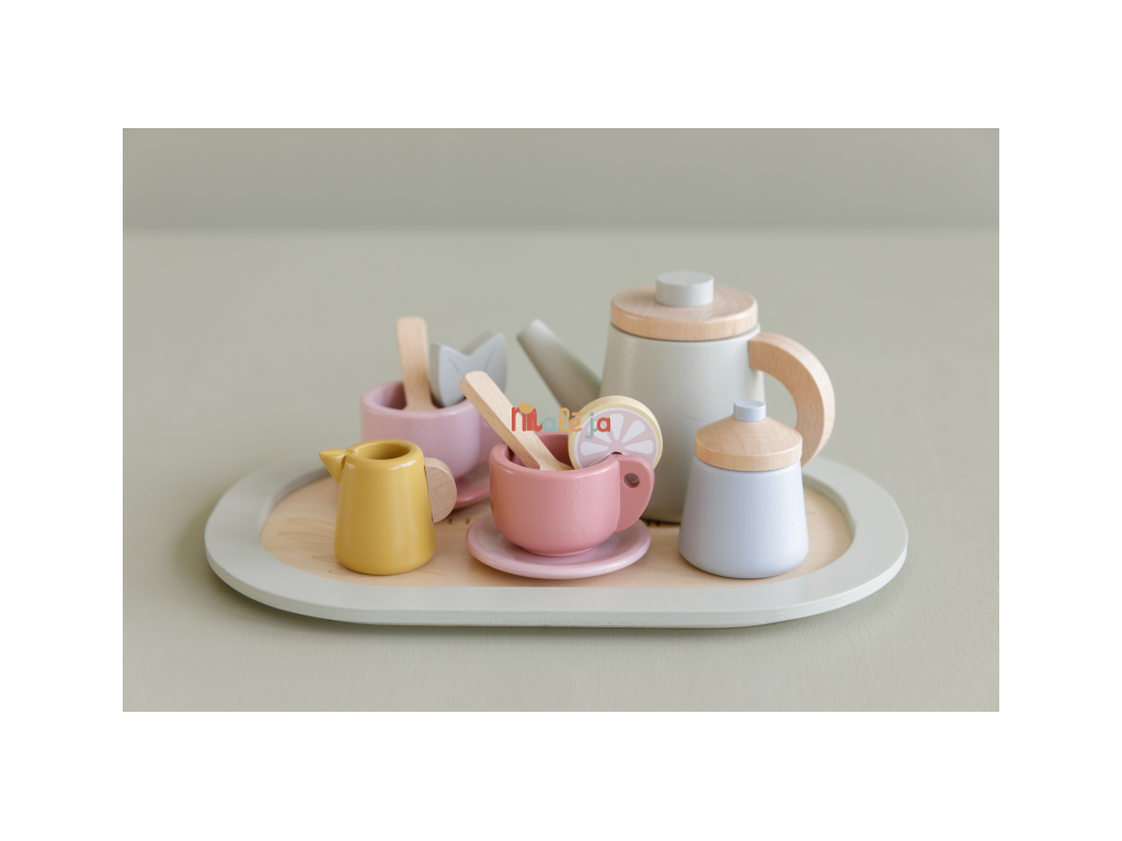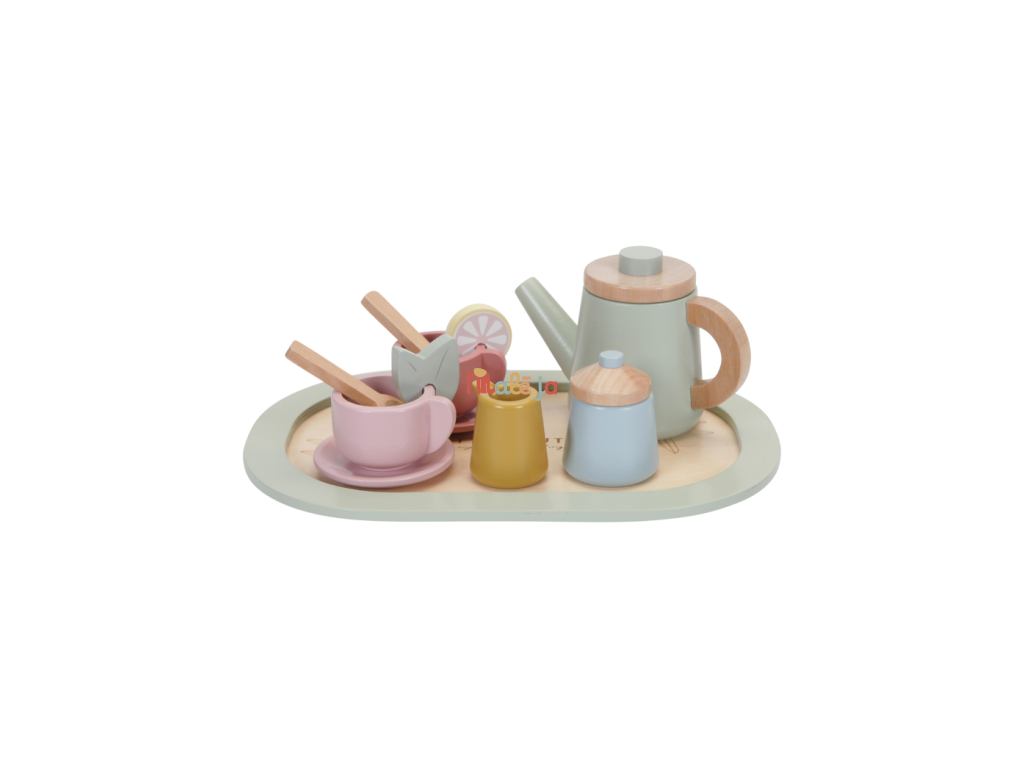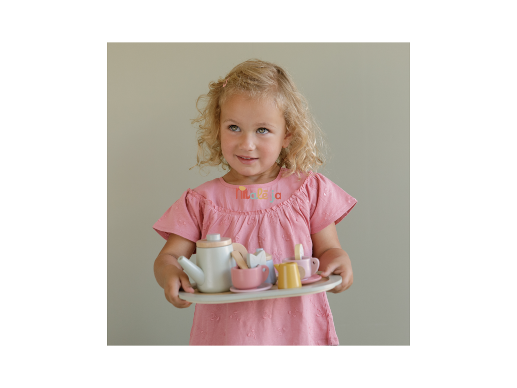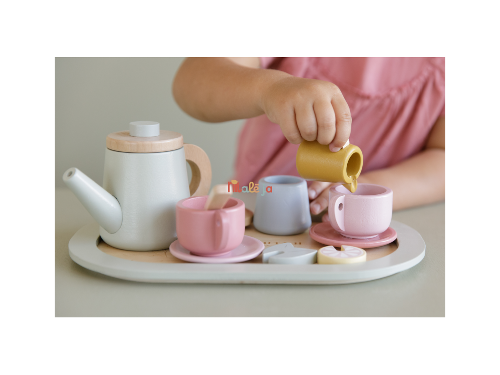 Dáte si čaj? S touto rozkošnou drevenou čajovou súpravou môže vaša ratolesť podávať šálku lahodného čaju s mliekom, cukrom alebo plátkom citróna či kúskom mäty. Máte všetky ingrediencie pre zábavné čajové popoludnie s priateľmi.