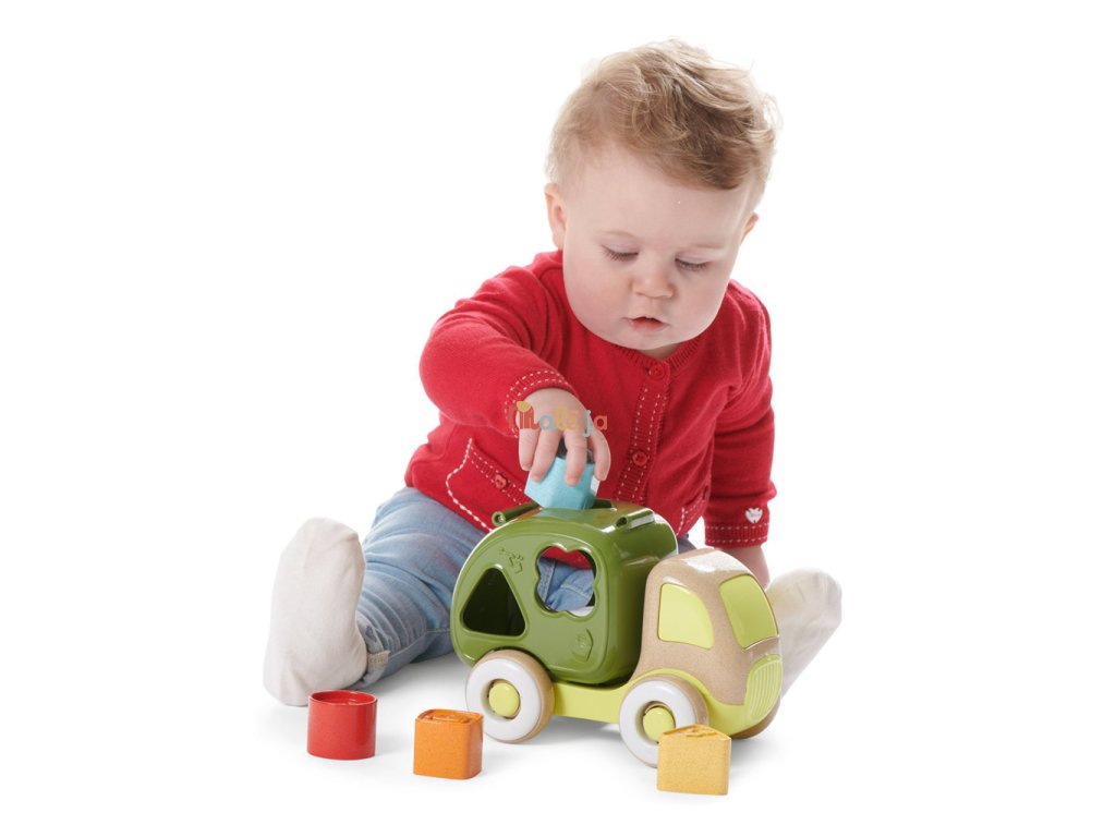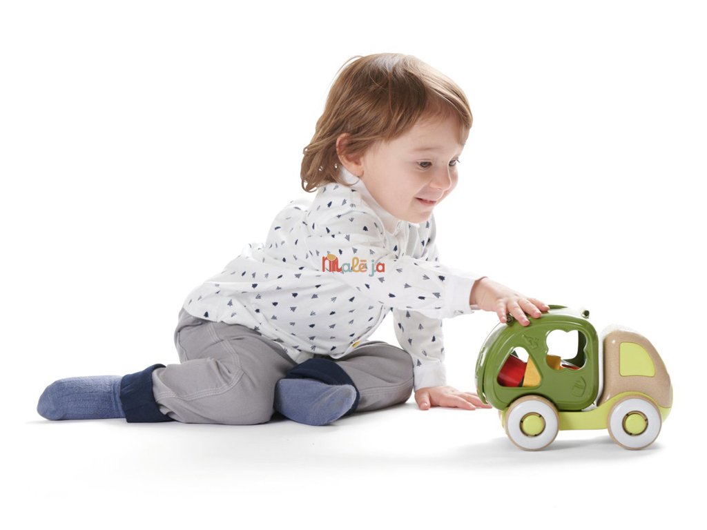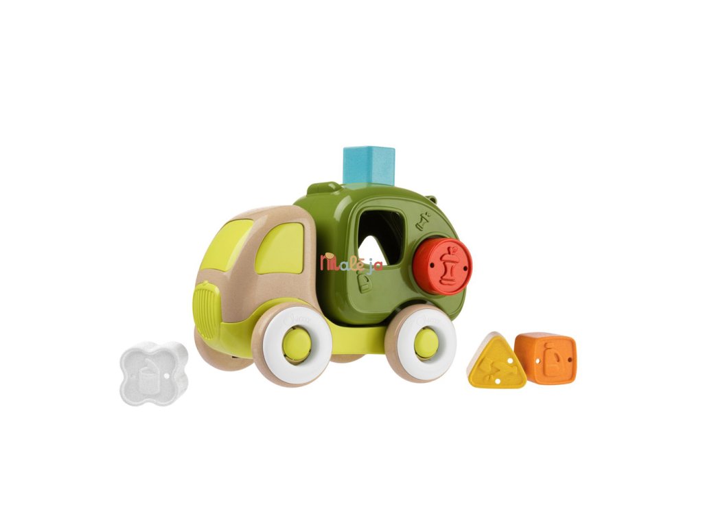 - Učenie sa hrou: Autíčko obsahuje 5 tvarov s reliéfom bežného domáceho odpadu na zábavnú a náučnú aktivitu triedenia tvarov. Pomáha rozvíjať koordináciu ruka-oko