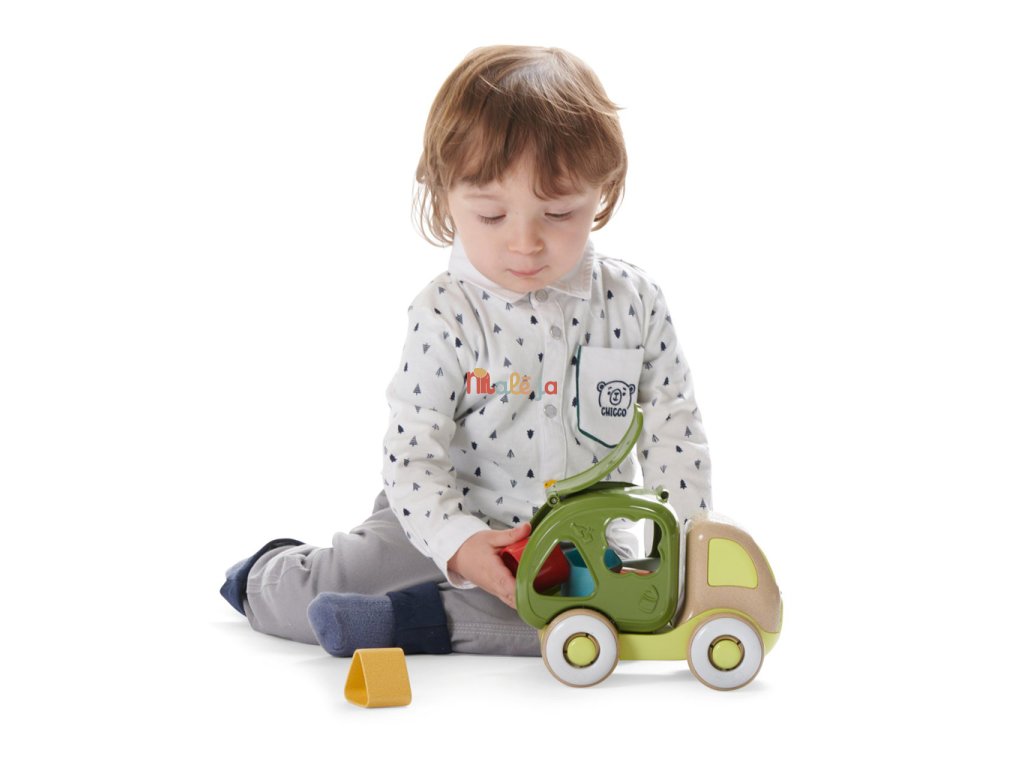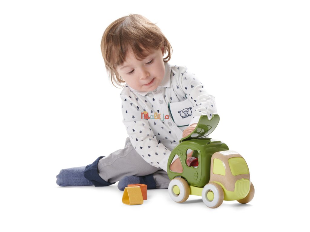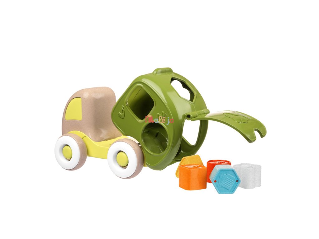 Recyklačné smetiarske auto s jedinečným dizajnom je vyrobené z recyklovaného plastu. Hračka okrem hry aj nasleduje a učí koncept o udržateľnosti a recyklovaní.