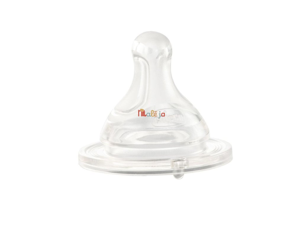 Cumlík na fľašu Chicco Perfect 5 zo silikónu má symetrický, predĺžený a sploštený tvar. Približuje sa tak najbližšie tvaru matkinej bradavky, tak ako vyzerá pri saní dieťaťa. Podporuje tak prirodzené peristatické kŕmenie.