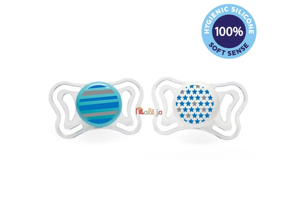 - extrémne mäkká zúžená pätička cumlíka umožňuje dieťaťu zavrieť ústa a redukuje riziko nerovnomerných zubných oblúkov (je ortodonticky korektná)