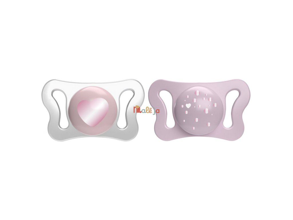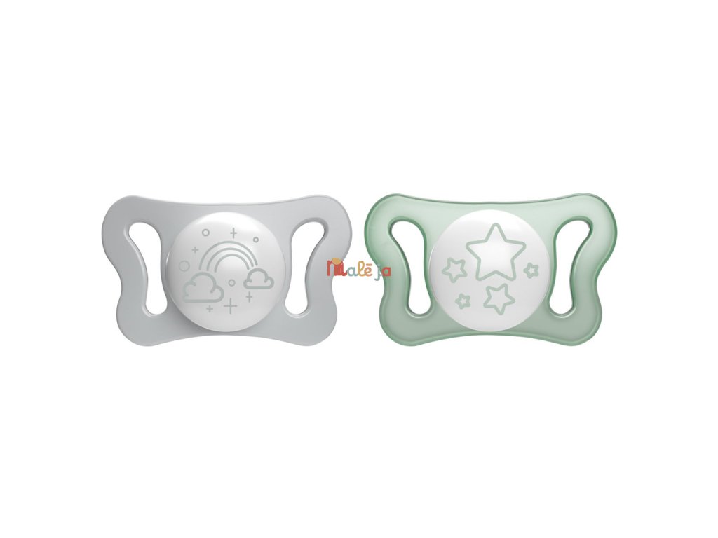 Vyrobené zo silikónu čo je hygienický, praktický materiál, ktorý sa nedeformuje. Vďaka exkluzívnej povrchovej úprave SOFT SENSE je mäkký a zamatový. Cumlík Chicco PhysioForma Micrò 0-2m vďaka svojmu exkluzívnemu tvaru podporuje správny vývoj úst a pomáha umiestniť jazyk dopredu, čím podporuje fyziologické dýchanie.