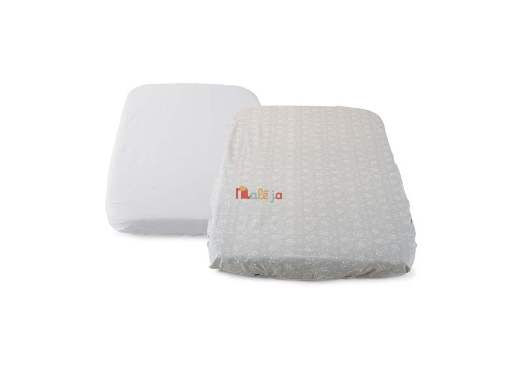 Súprava dvoch plachiet zo 100% jemnej bavlny je ideálna na postieľku Chicco Next2Me, ale aj iné postieľky s rozmerom matraca 85 x 50 cm.