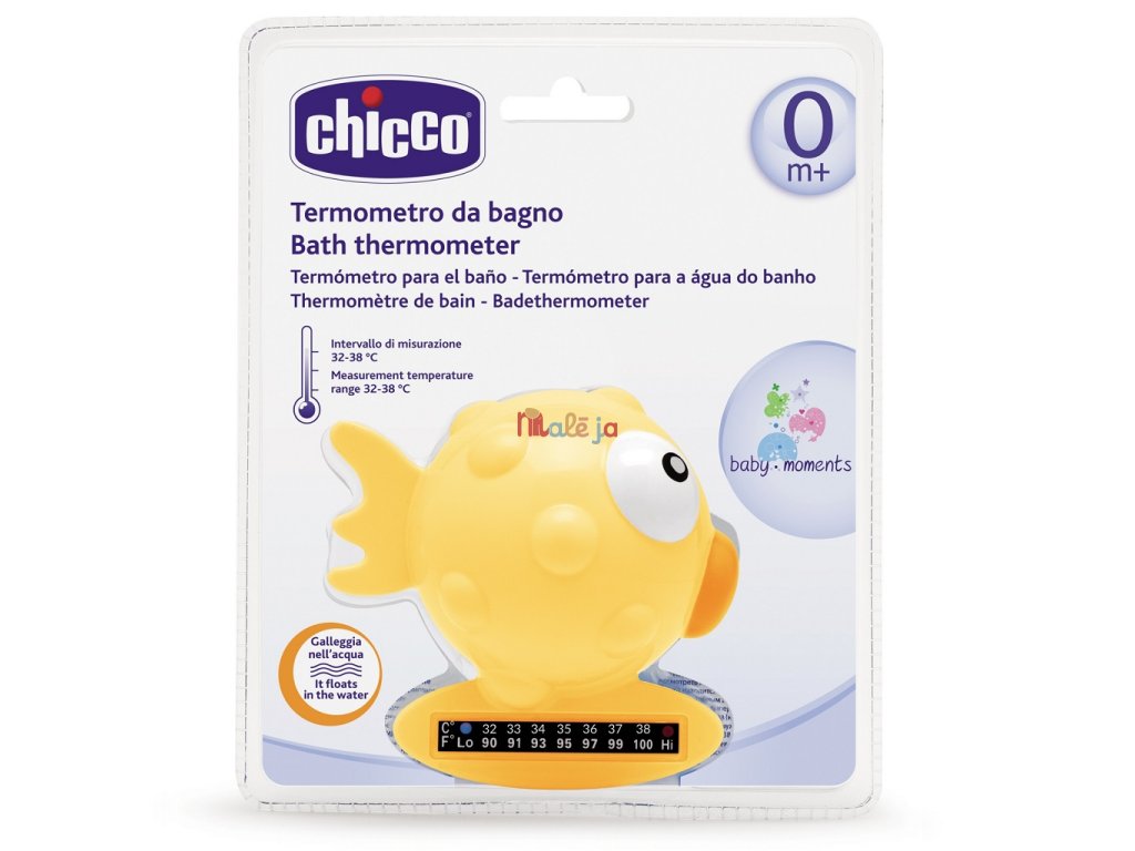 Praktický teplomer v tvare rybičky na určenie správnej teploty kúpeľa. Citlivý prúžok mení farbu podľa teploty a vždy ukazuje aktuálnu teplotu kúpeľa v ° C.