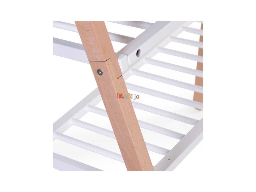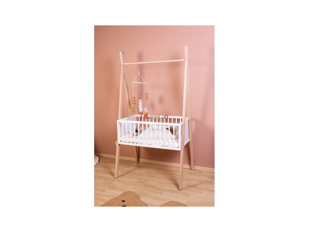 Originálna drevená postieľka pre bábätko od narodenia do cca 6 mesiacov sa ľahko premení na praktický stojan na oblečenie, ktorý môže byť súčasťou detskej izby až do dospelosti. Vďaka krásnemu drevenému prevedeniu bude postieľka aj stojan na oblečenie s dvoma policami a tyčou na zavesenie oblečenia na ramienkach krásnym doplnkom detskej izby.