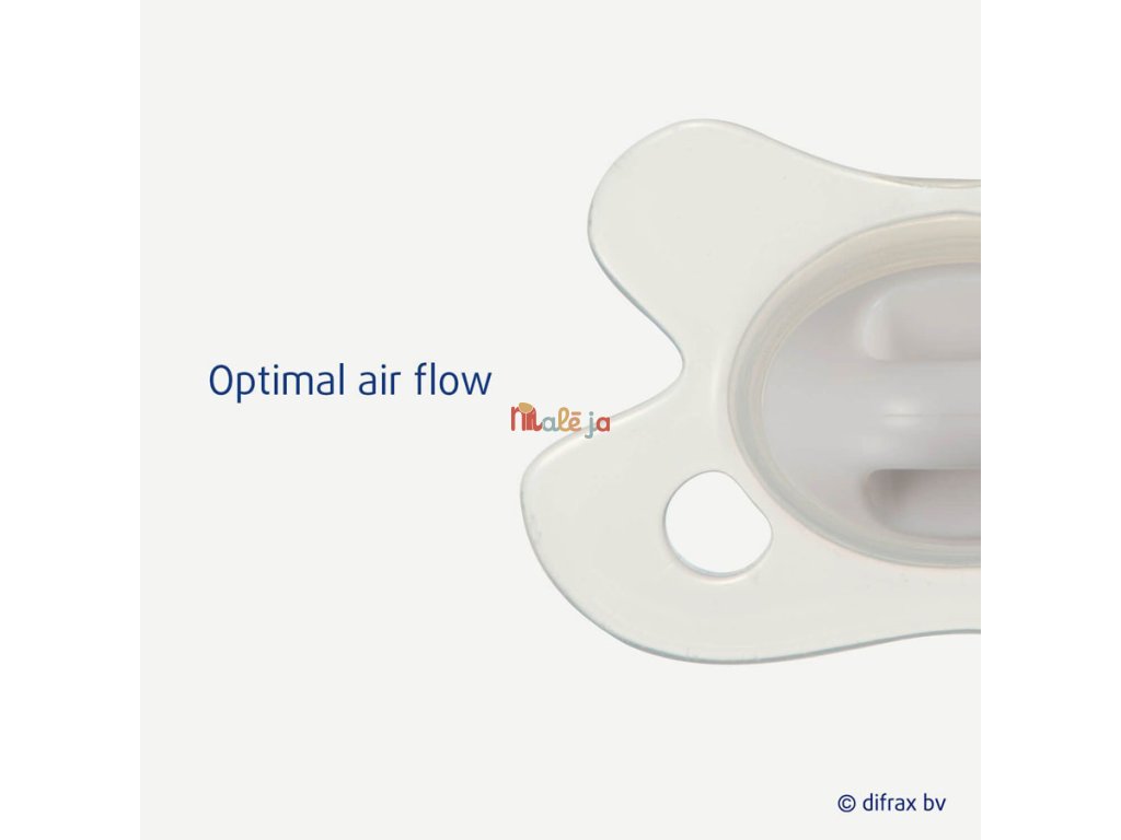Unikátny cumlík Difrax má kotúč v tvare motýľa, ktorý zaistí, že sa cumlík dokonale prispôsobí tvaru tváre Vášho dieťatka. Vykrojenie kotúča umožňuje bábätku voľné dýchanie nosom. Dva prídavné otvory zabezpečujú dostatočný priechod vzduchu, čím obmedzujú možnosť podráždenia pokožky bábätka. Cumlík dodáva dieťatku pocit pohodlia, útechy a uvoľnenia. Difrax cumlíky sú navyše dostupné v niekoľkých populárnych prevedeniach a v rôznych farbách.
