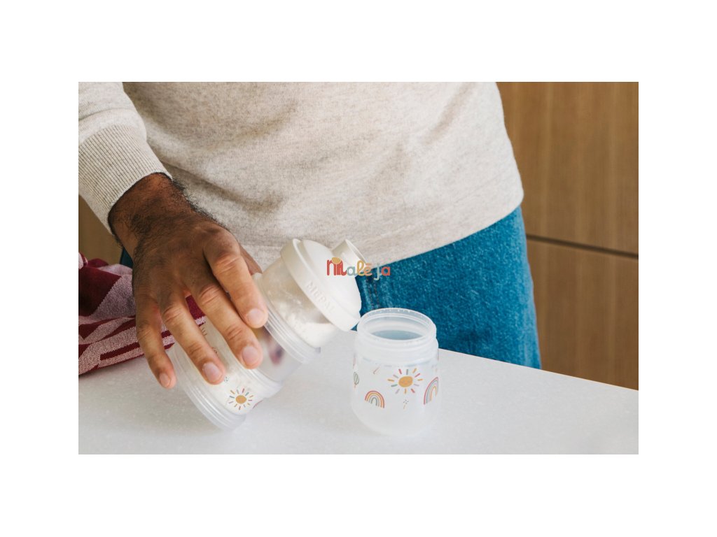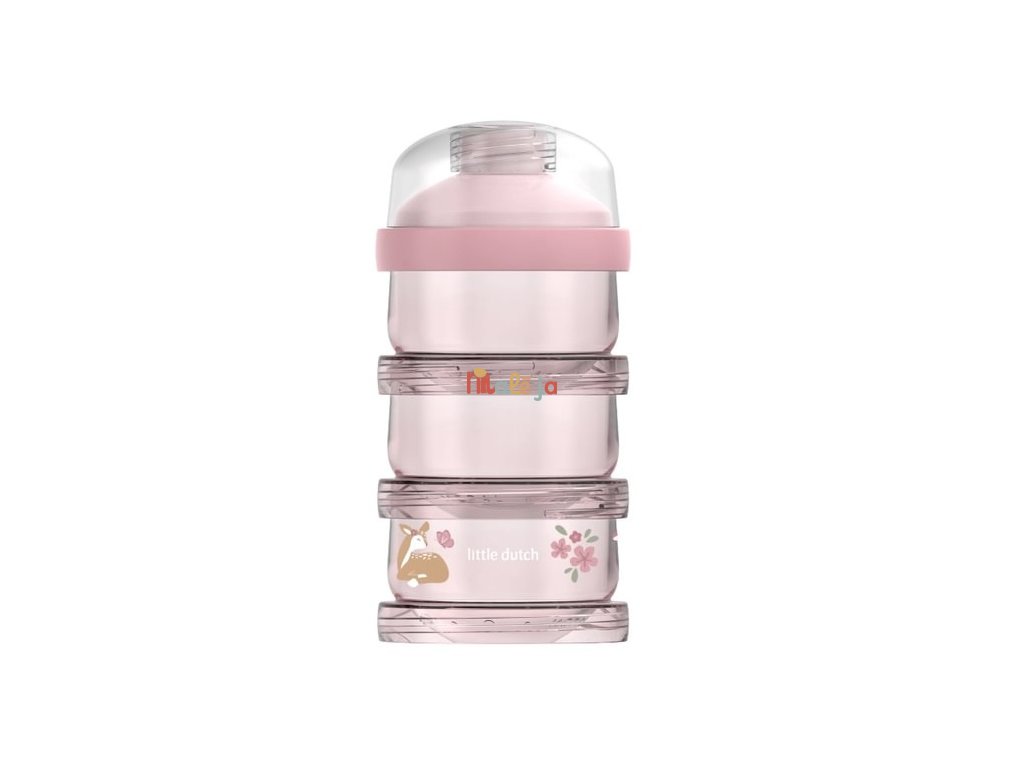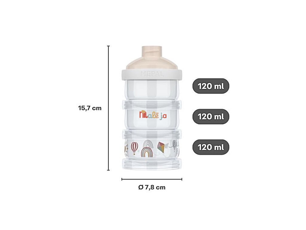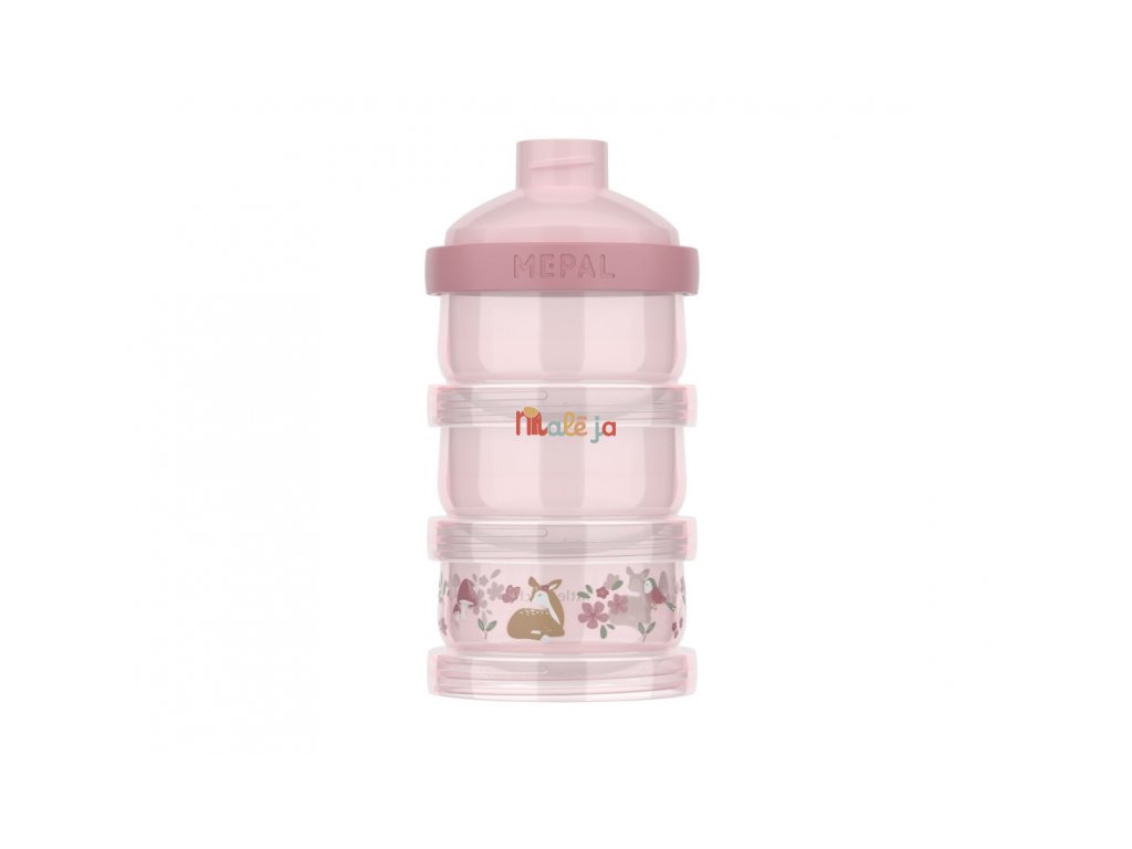 Trojdielna nádoba na sušené mlieko Little Dutch Forest Friends ponúka jednoduchý a hygienický spôsob prípravy dojčenského mlieka doma na cestách. Nádoba obsahuje tri stohovateľné tégliky, ktoré sú jednotlivo uzavreté skrutkovacími viečkami. Praktické nasýpacie viečko hore uľahčuje dávkovanie sušeného mlieka do fľaše.