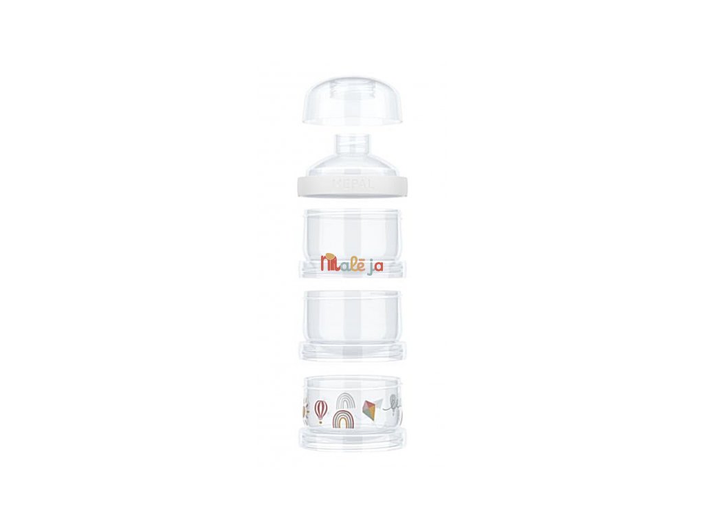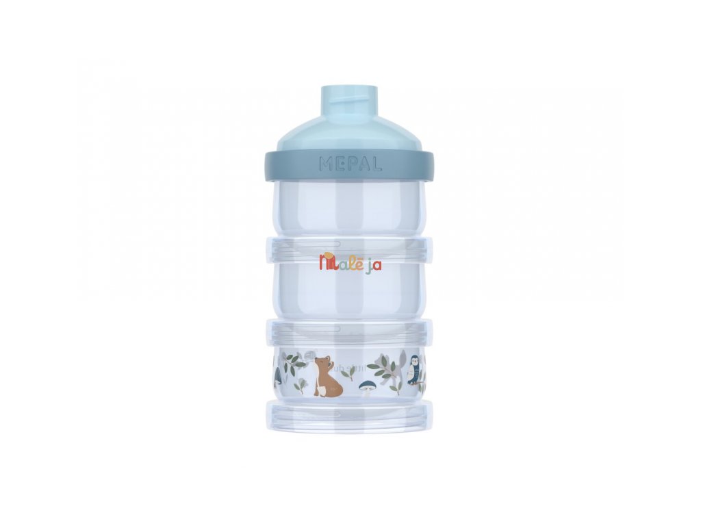 Trojdielna nádoba na sušené mlieko Little Dutch Forest Friends ponúka jednoduchý a hygienický spôsob prípravy dojčenského mlieka doma na cestách. Nádoba obsahuje tri stohovateľné tégliky, ktoré sú jednotlivo uzavreté skrutkovacími viečkami. Praktické nasýpacie viečko hore uľahčuje dávkovanie sušeného mlieka do fľaše.