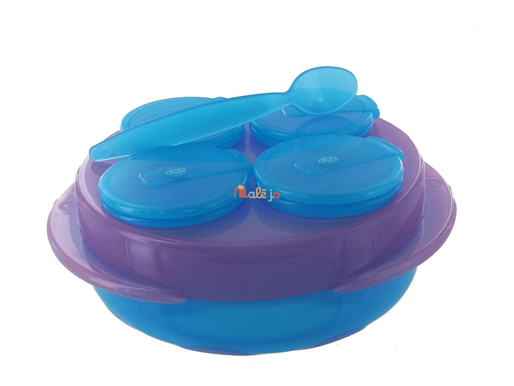 Táto sada bola navrhnutá pre cestovanie s dieťaťom. Rôzne časti potravy môžete uložiť samostatne do 100 ml nádobiek s vekom, a neskôr ich servírovať na tanieriku lyžicou. Všetky časti sady môžu byť umyté v umývačke riadu v hornom košíku. Tanier i dózy bez viečka môžete vložiť do mikrovlnnej rúry. Uzavreté dózy môžete dať do mrazničky.