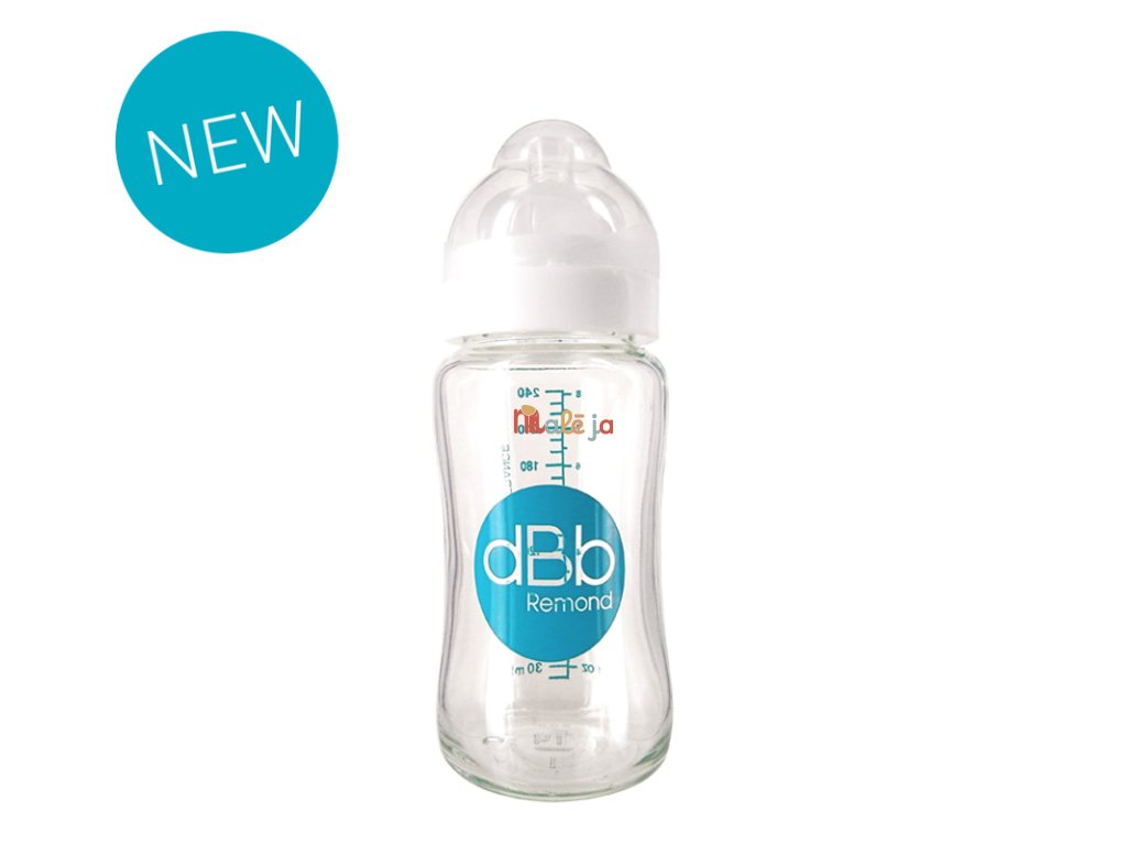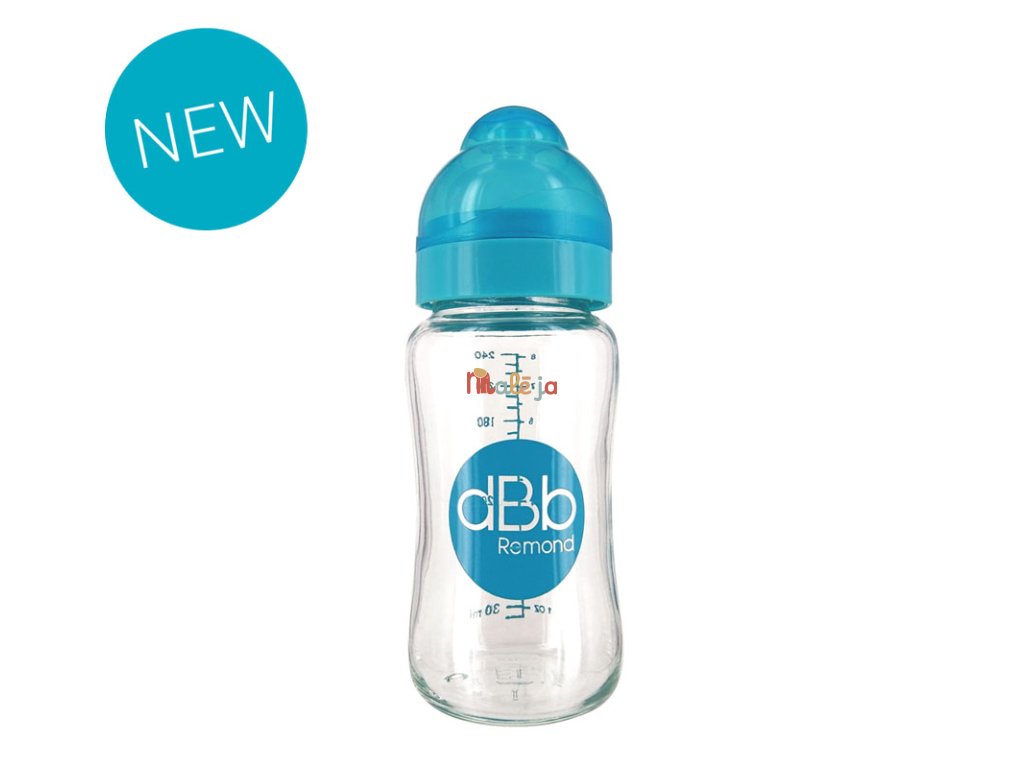 Mechanicky i tepelne odolná detská fľaštička z borosilikátového skla. Skrutkový uzáver, silikónový cumlík pre novorodenca 0 - 4 mesiace so štyrmi otvormi. Hygienický kryt cumlíka. Objem 240 ml pokrýva väčšinu potrieb dieťaťa. Silikónový cumlík je vybavená 4 otvormi a ventilom pre prisávanie vzduchu, aby sa zabránilo jeho prehĺtaniu. Neskôr, až dieťa povyrastie môže byť fľaštička tiež vybavená cumlíkmi s krížovým otvorom, ktoré sú tiež antikolikové.