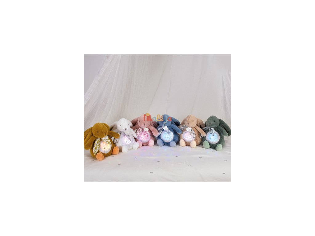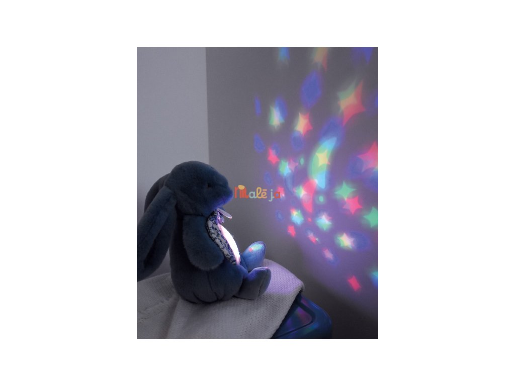 Zajačik od DouDou et Compagnie v krásnych púdrových farbách je veľmi jemný a bábätko si ho rýchlo obľúbi. Na stenu si premietnite hviezdičky a upokojujúca melódia ľahko uspí bábätko.