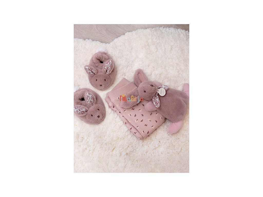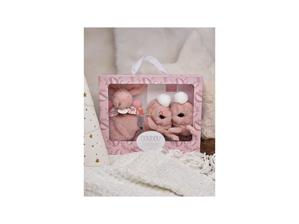 V tejto elegantnej darčekovej krabičke nájdete 15 cm mojkáčika zajačika a mäkkučké papučky v zodpovedajúcom dizajne.
