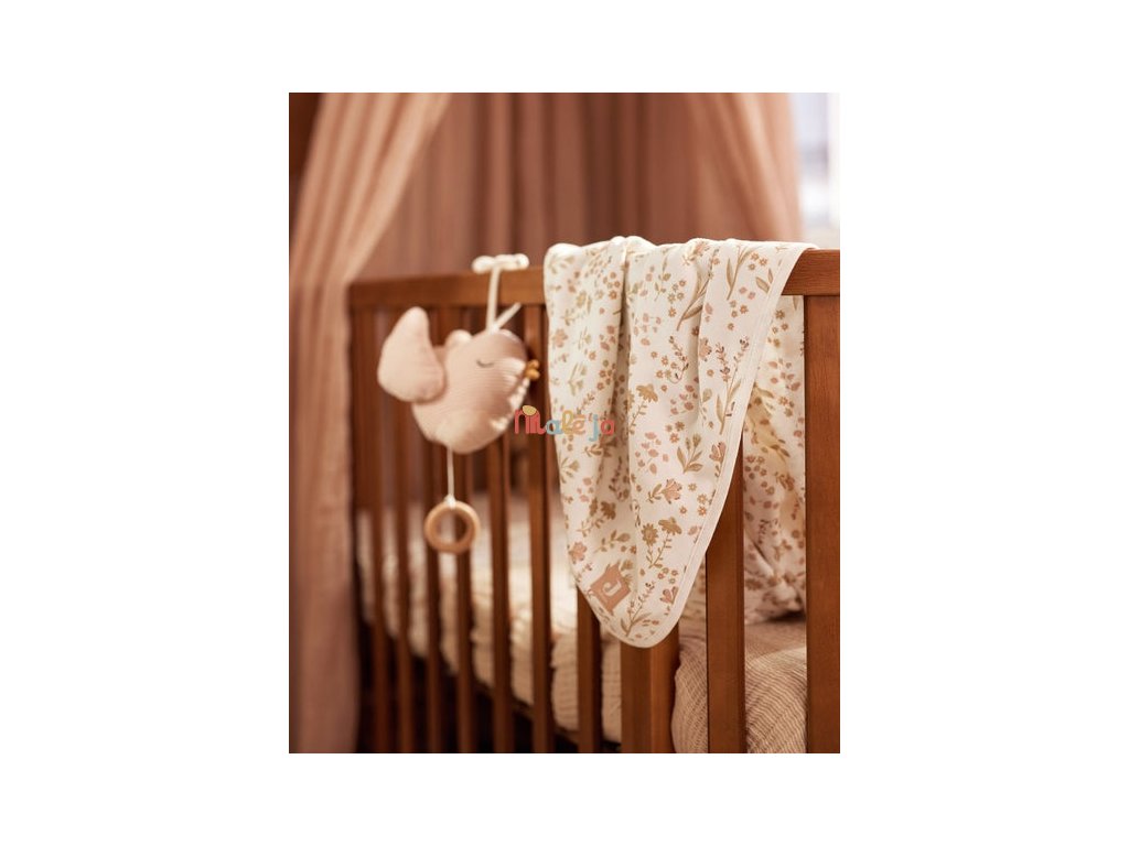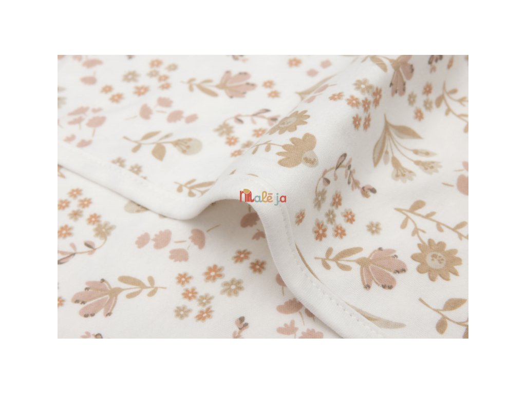 Mäkká bavlnená deka s krásnou kvetinovou potlačou je ideálna na prikrytie bábätka v kočíku, kolíske či košíku.