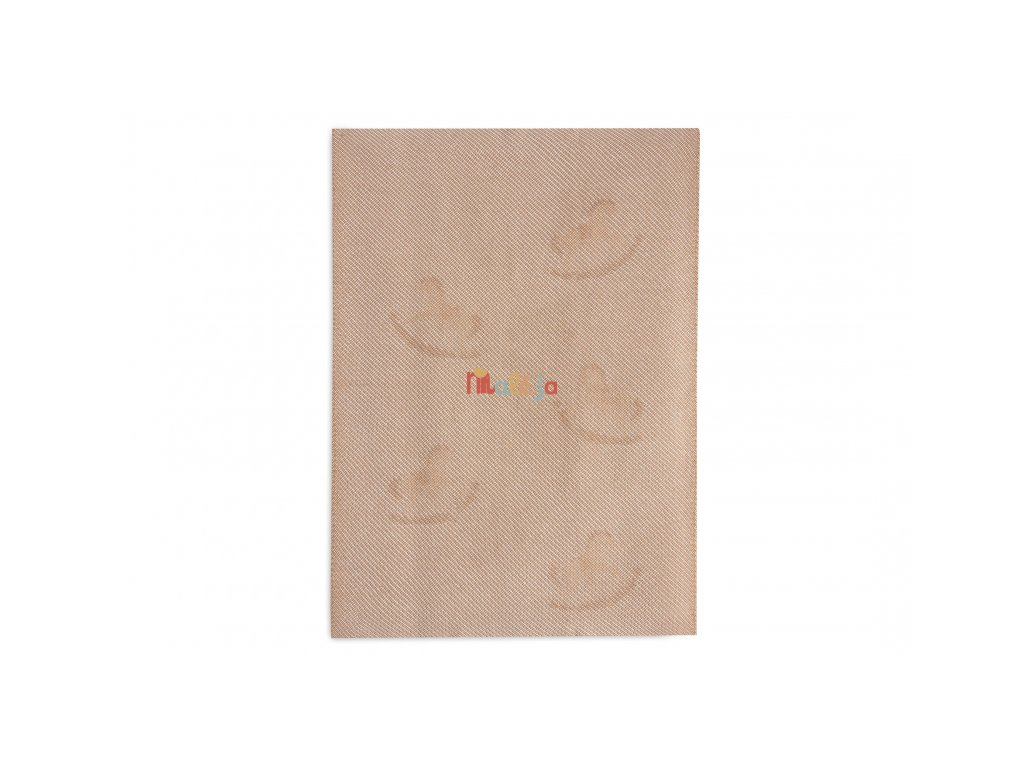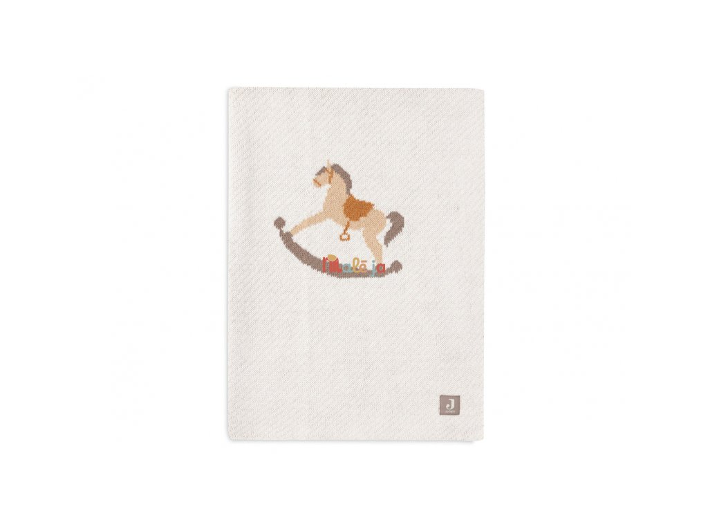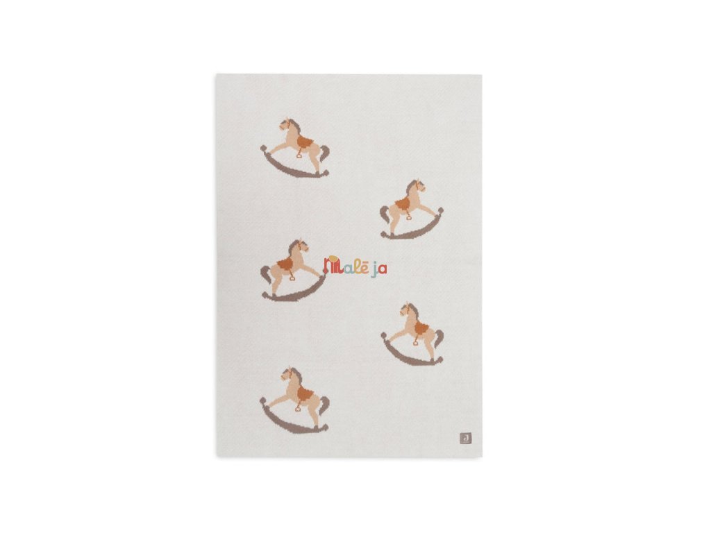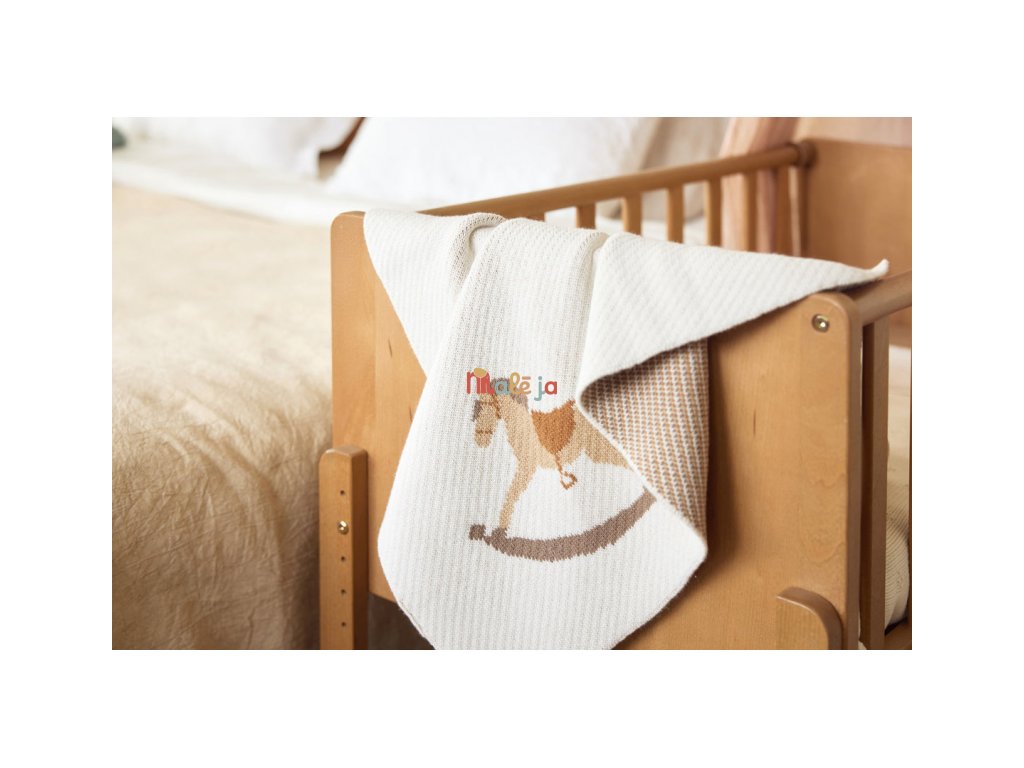 Mäkká pletená deka s krásnym vzorom hojdacích koníkov je ideálna na prikrytie bábätka v kočíku, kolíske či košíku.